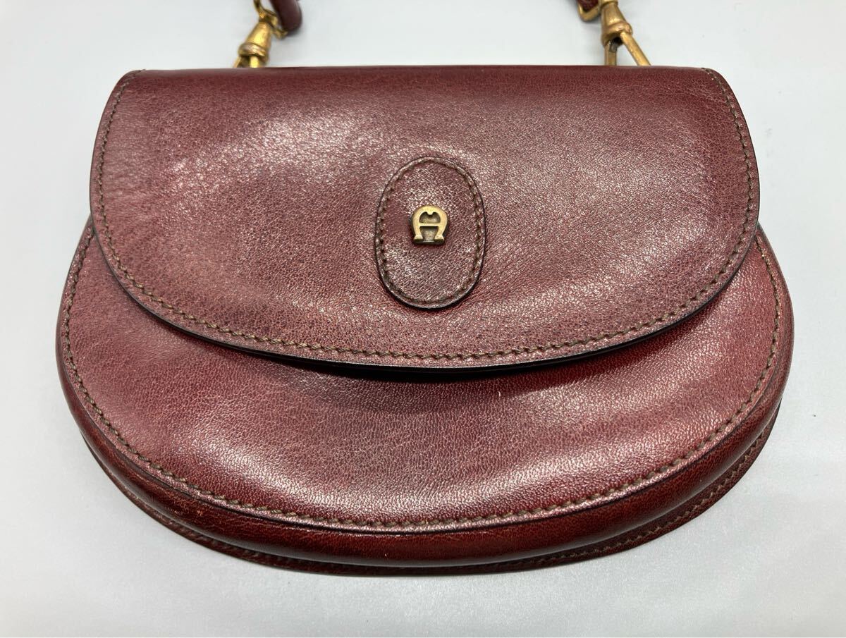 アイグナー ショルダーバッグ ポーチ ボルドー 赤 ゴールド金具【1304】