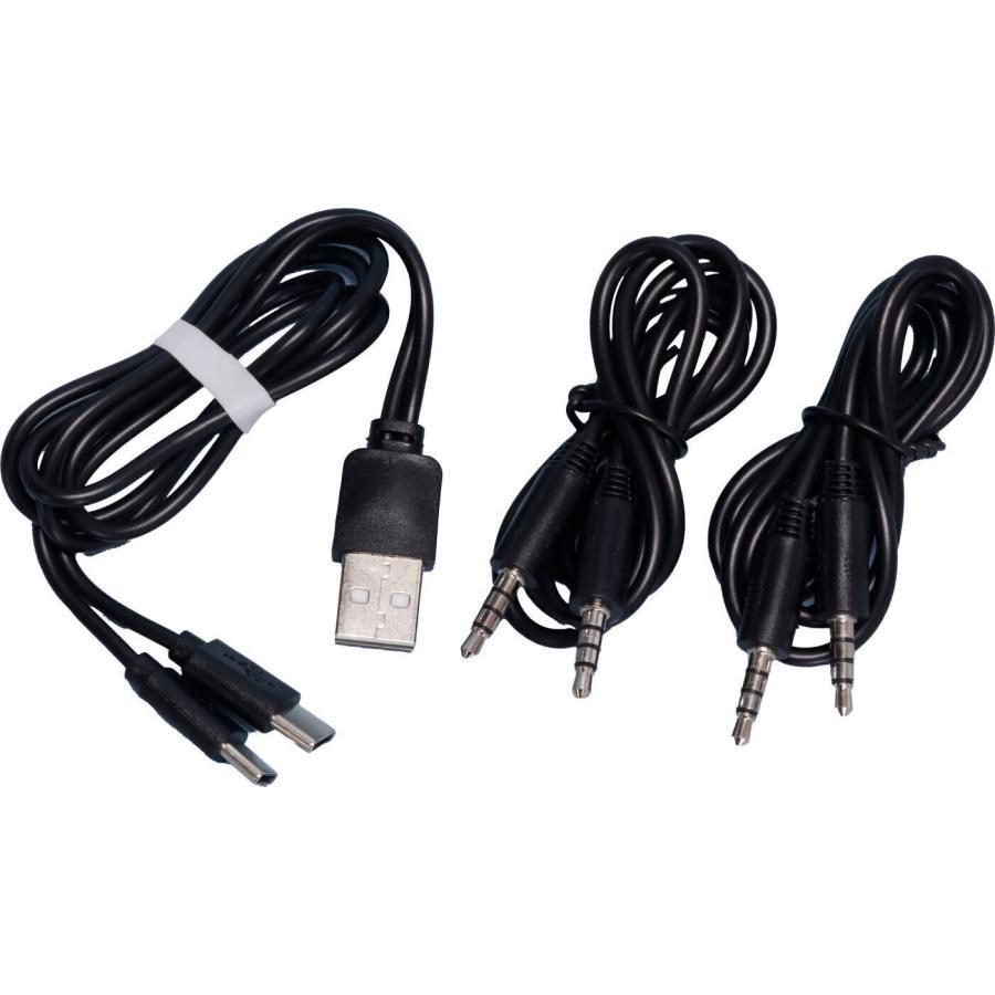 付属品:3.5mmTRSミニオスーオスケーブル(81.5cm)x2、充電用USBケーブル(TypeA to TypeCx2(二股))
