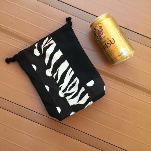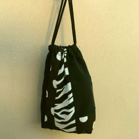 【入学、入園!】450円ゼブラとドット(モノクロ)パッチワーク巾着袋 【手作り小物】