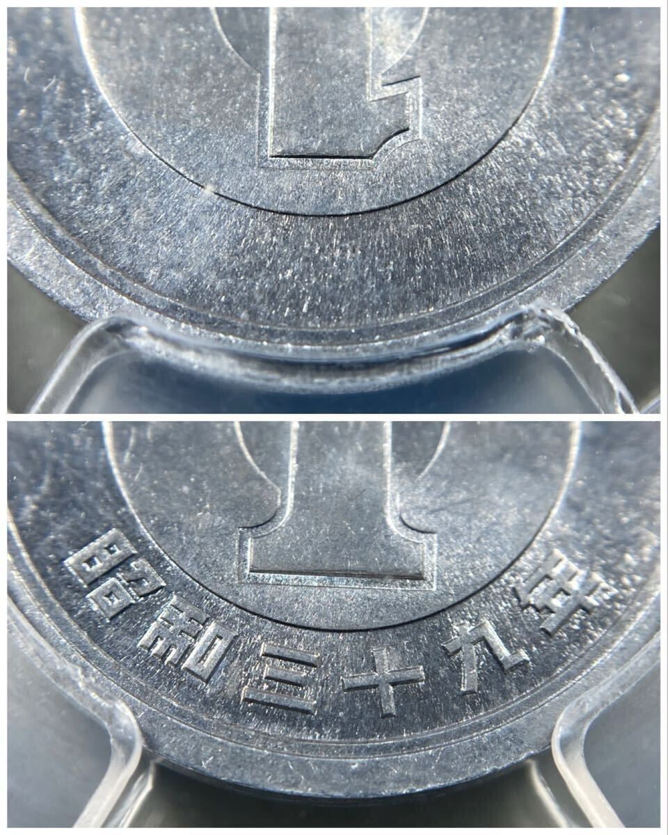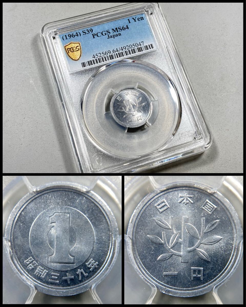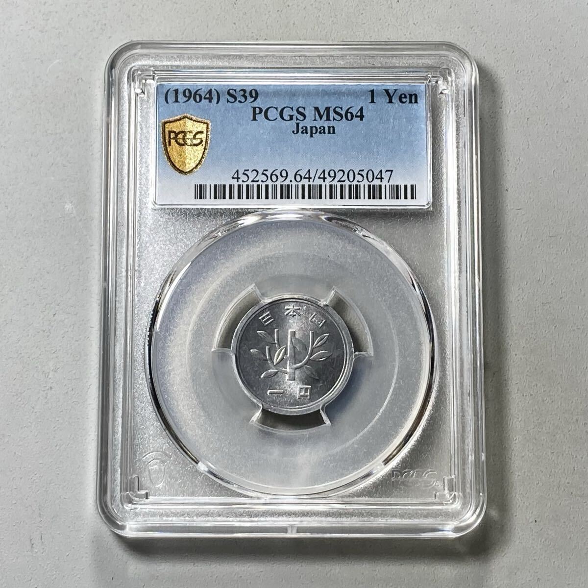 こちらは1円アルミ貨(昭和39年)のPCGSスラブコイン(MS64)になります。