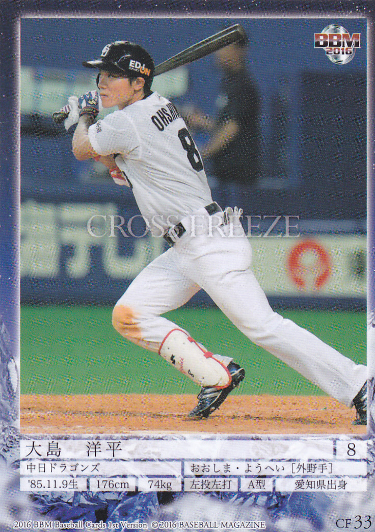 BBM2016ベースボールカード1st CF33 大島洋平 愛知県 中日ドラゴンズ