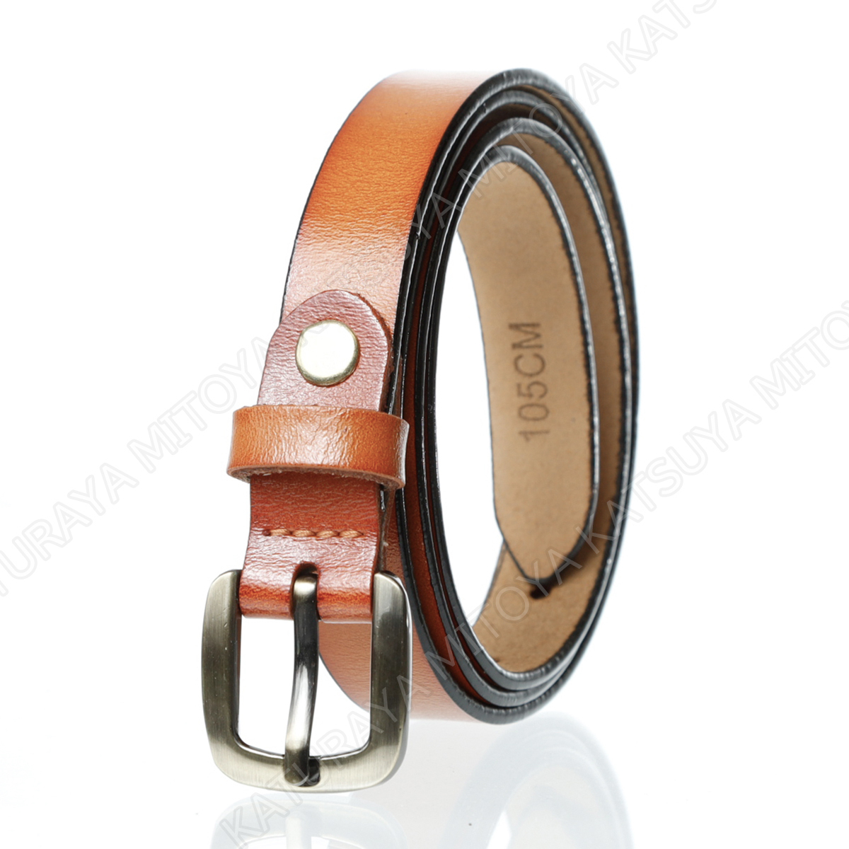 本革 レディース ベルト 細ベルト★キャメル★細い 細め 牛革 レザー カジュアル シンプル スマート 大人 フォーマル 長さ調節 調整a209