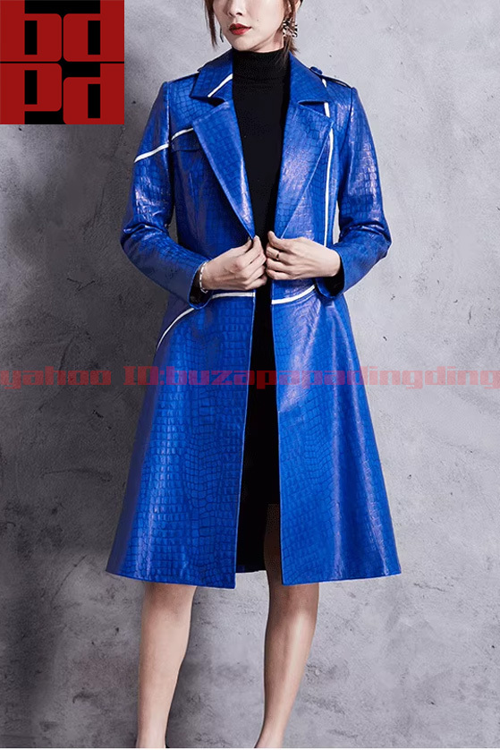 ラムレザー ワニ革エンボス スーツカラー ミディ丈 トレンチコート レディース 秋冬 レザーコート きれいめ おしゃれ 大人 上品 高級感 Z17