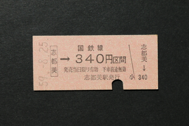 乗車券 志都美→340円区間