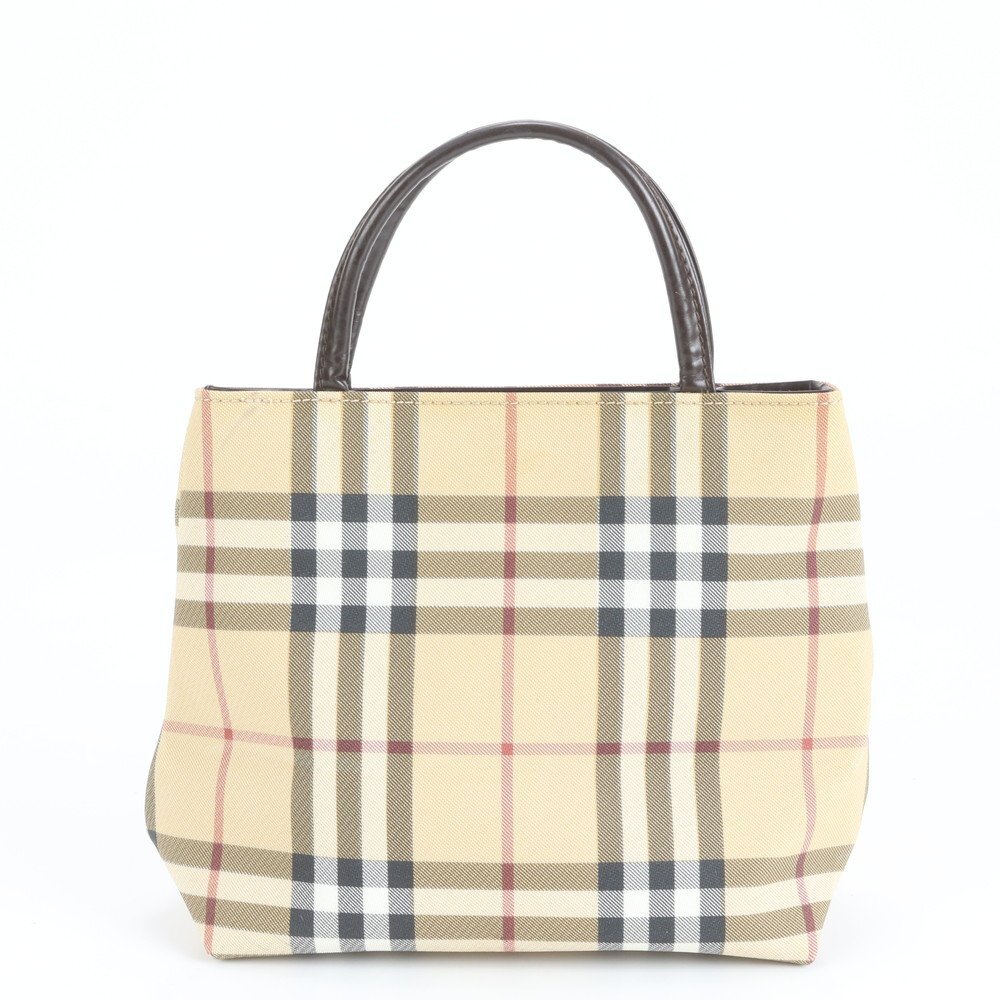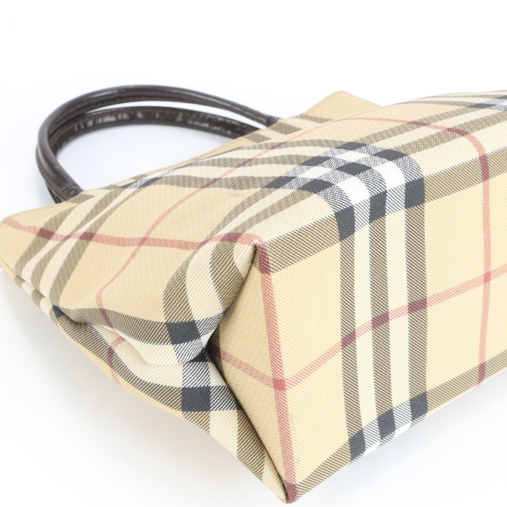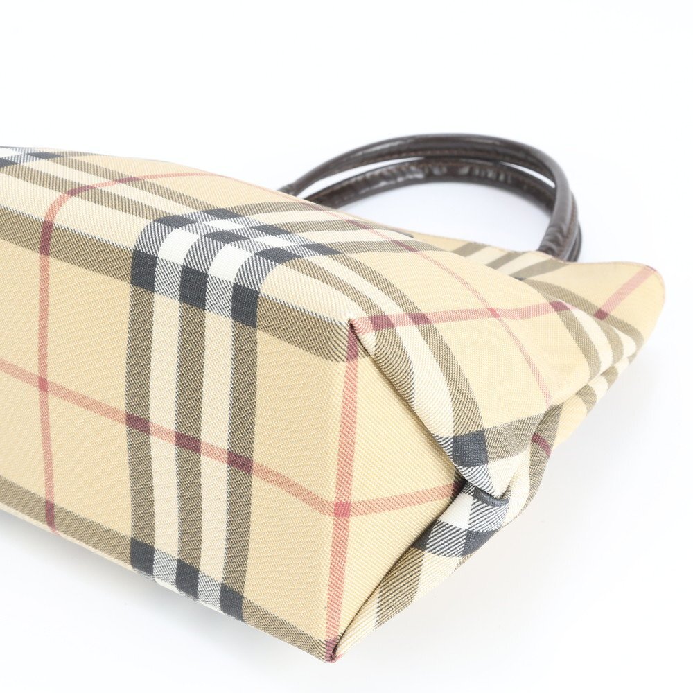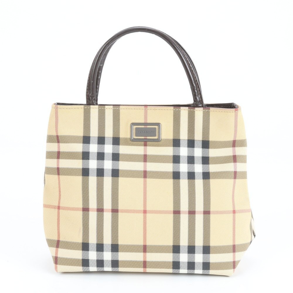1円■極美品■バーバリー■ノバ チェック レザー スクエア トート バッグ 肩掛け ショルダー ハンド ベージュ レディース EUE CV14-6