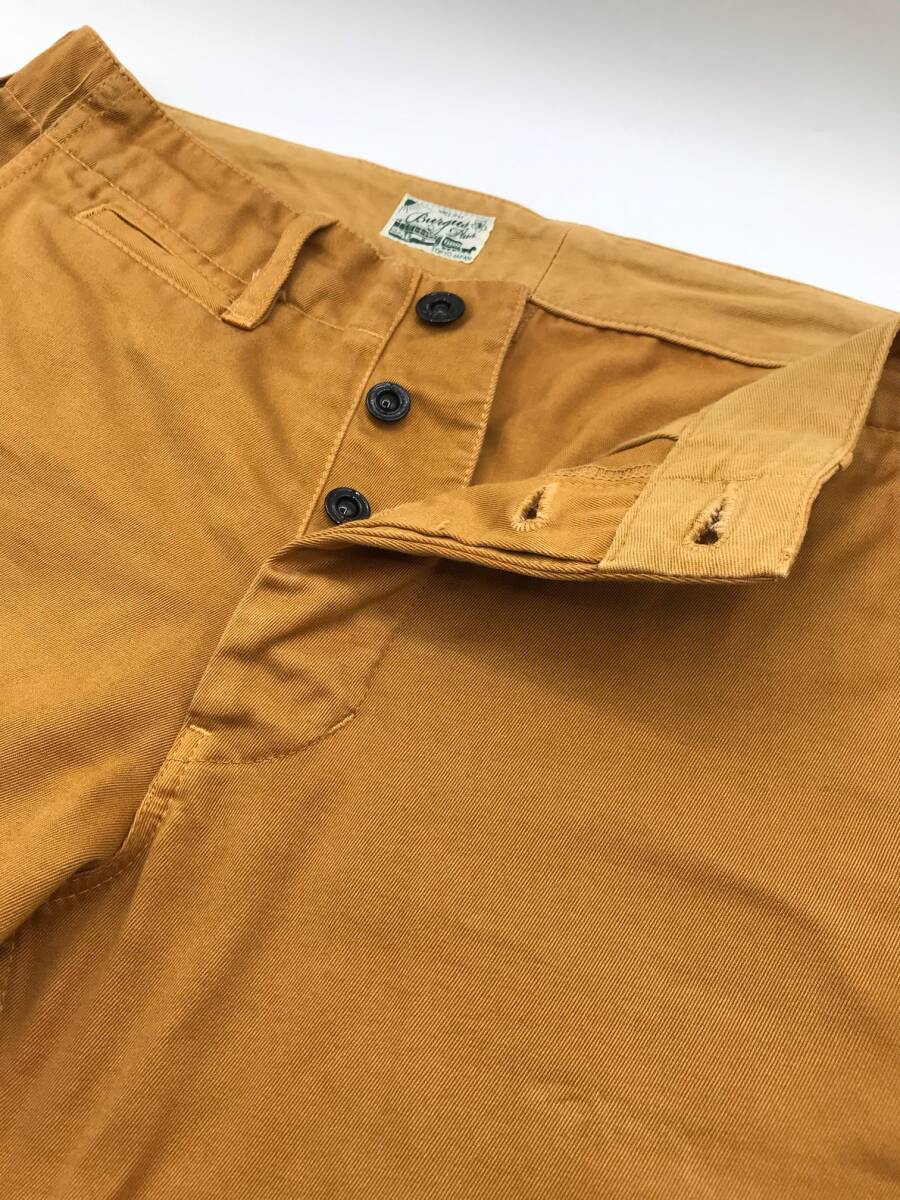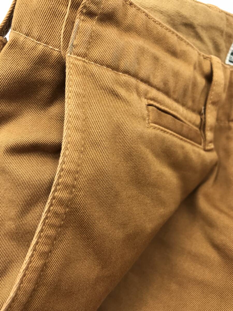通常のチノパンと違い、色落ちやアタリが楽しめる一着だと思われます。