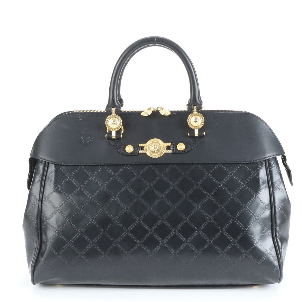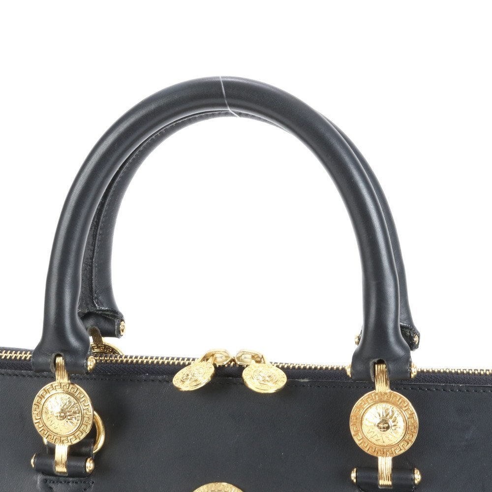1円■極美品■ジャンニ・ヴェルサーチ■サンバースト メデューサ レザー ボストン バッグ 出張 旅行 ブラック 黒 A4 レディース ERE CV11-8