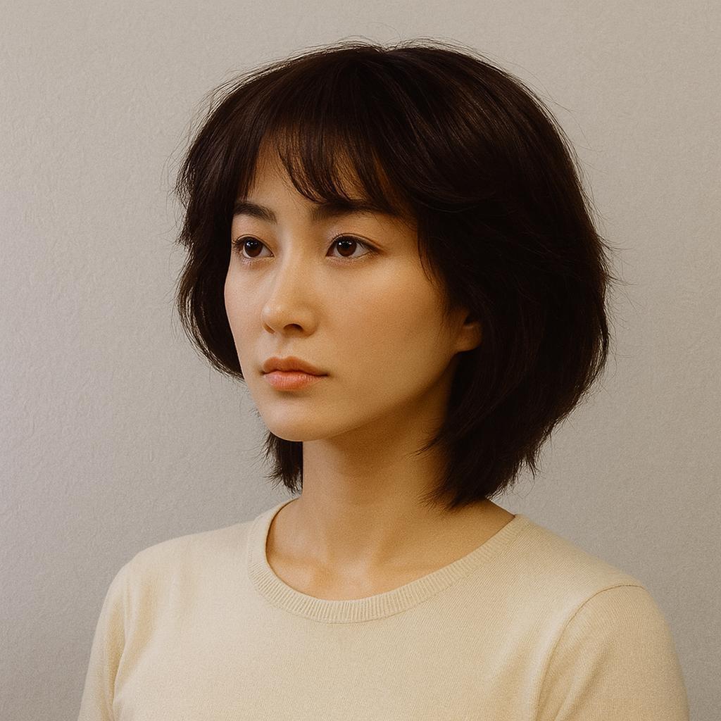 特徴・ポイント  前髪は下ろしても分けてもOK、アレンジ自由  自然なブラウンカラー