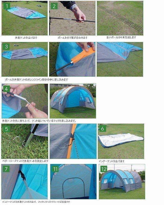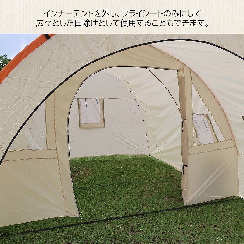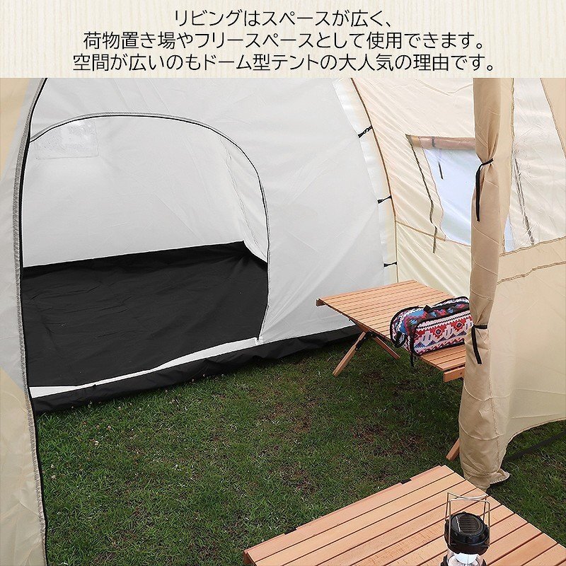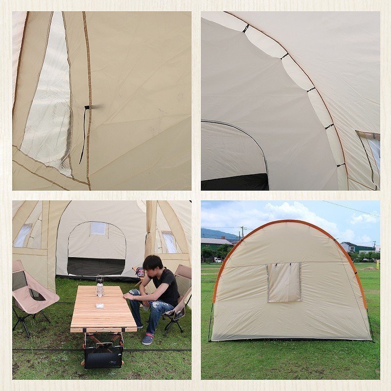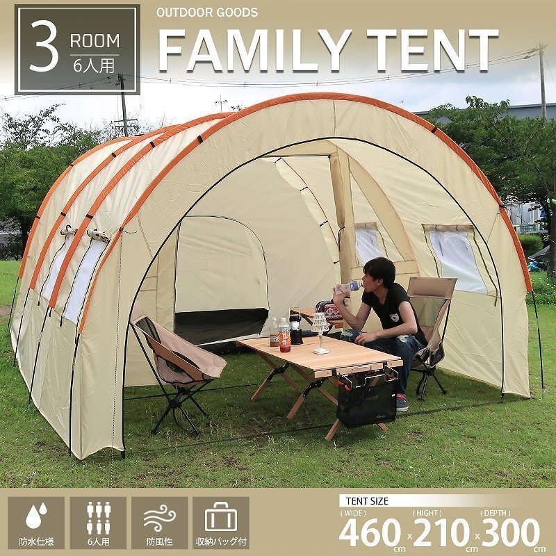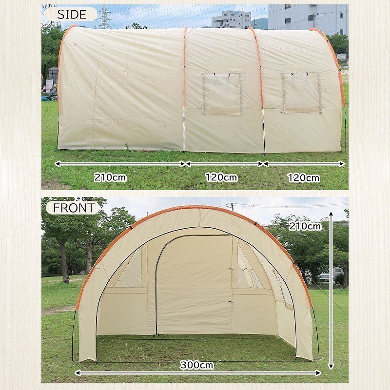 大人気のドーム型テントを当社限定オリジナルカラーで販売!! 大人6人分の就寝スペース、そしてリビングスペースを備えた計3ルームテントです! 本格的就寝スペースとリビングスペースが設営でき、 グループやファミリーにおすすめの一台です。 広々としたリビングスペースにはチェアやテーブルなどを配置できます! メッシュ小窓付き! 突然の雨でも安心。耐水圧分3000mmの 防水加工が施されており 多少の雨でも安心してご使用いただけます。 持ち運びや収納に便利な専用バッグ付き。 【商品仕様】 カラー:アイボリー カラーナンバー:468C 持ち運び用バッグカラー:ブルー 全体サイズ:横460cm×高さ:210cm×奥行き300cm リビングスペースサイズ:横300cm×奥行き120cm 就寝スペース内寸サイズ:横300cm×奥行き120cm 収納時サイズ:横70cm×高さ25cm×奥行き25cm 定員:6人(1部屋6人) インナーテント素材:190T フライシート素材:210T フロア素材:210D 重量:8kg 【商品内容】 ・本体 ・持ち運び用バッグ ・固定具(袋、ペグ) ※ハンマーは付属しておりません。 ※付属品は参考画像になります。 ※本製品は撥水加工を施しておりますが、雨量によっては浸水することがあります。 大雨、豪雨など、雨量が多い時のご使用はお控えください。 ※広げる時は周りに人がいないことや障害物のないことを確かめて広い場所で広げてください。 注意事項 ・海外製品のため、商品に多少のキズや布地に擦れ汚れ、糸のほつれなどがある場合がございます。ご了承ください ・入荷時期により仕様変更等がある場合がございますのでご理解の方宜しくお願いします。 ・販売専門になりますので、設置のサポートは行っておりません。 ・商品は、モニターによって色合いが異なって見える場合があります。 |