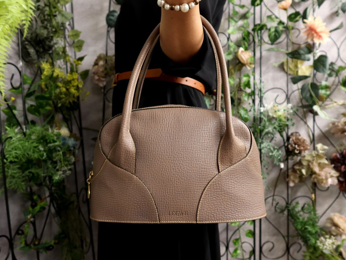 ●超美品●LOEWE ロエベ●ロゴ型押し●カーフ レザー 本革●ハンド バッグ●ココアブラウン●ゴールド金具●腕掛け●かばん●Js60695