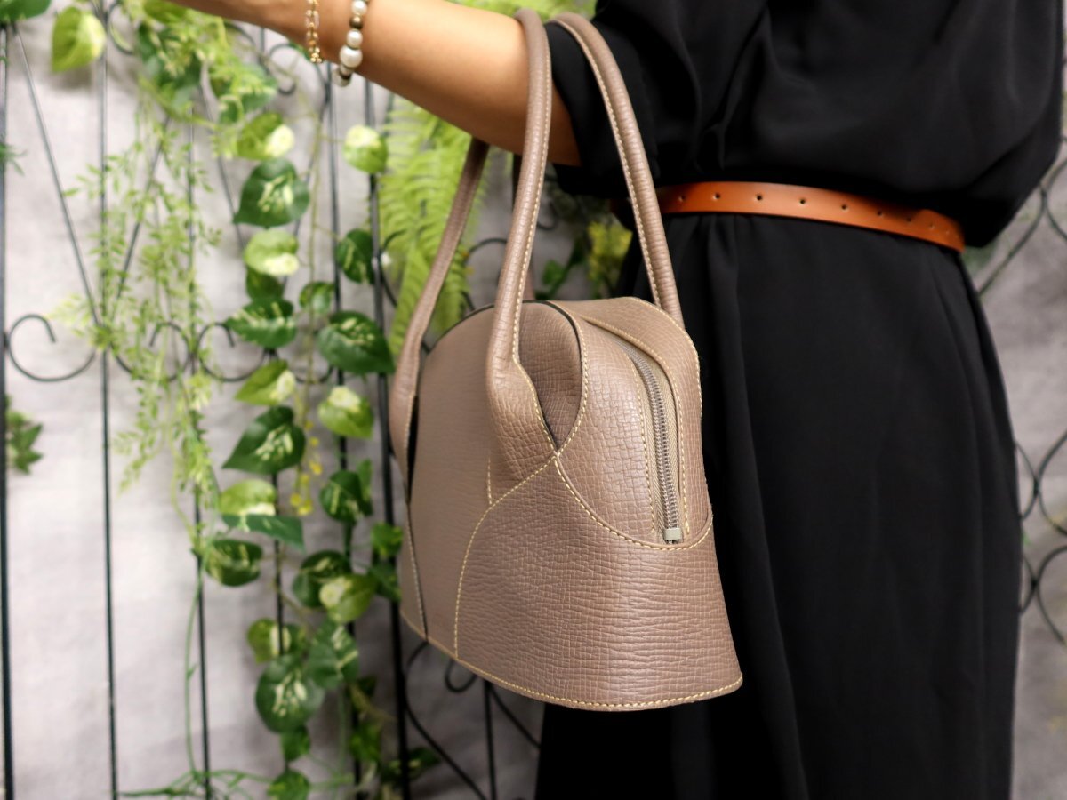 ロゴ型押し カーフ レザー ハンド バッグ