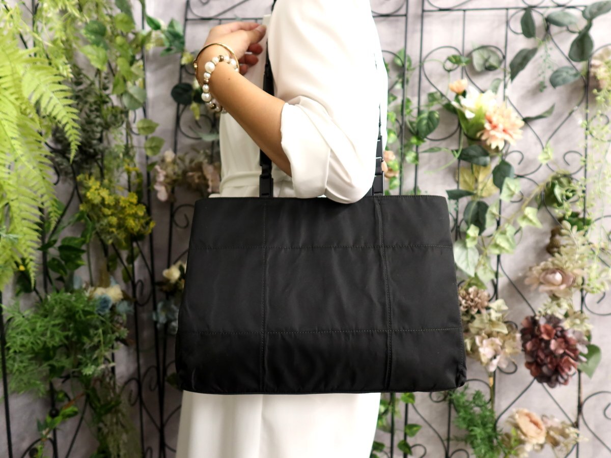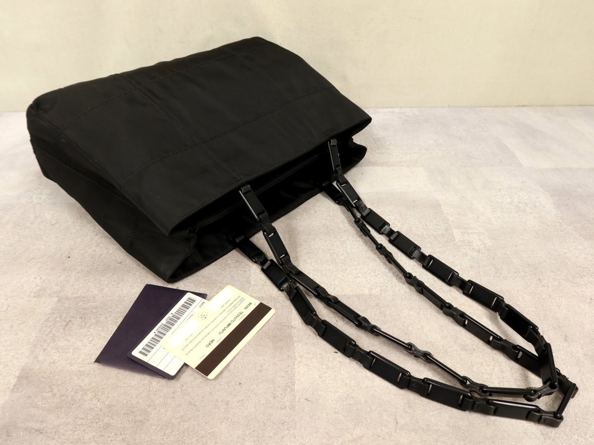 ●超美品●プラダ●三角ロゴプレート●プラスチックチェーン●ポコノ ナイロン カーフ レザー 本革●ショルダー バッグ●黒●A4●Js61115