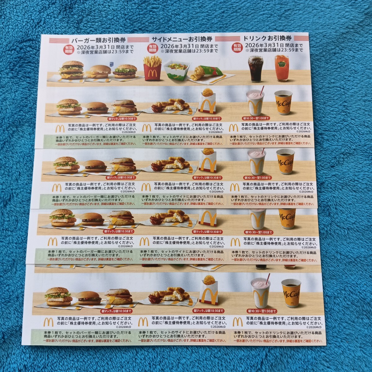 【最新・迅速対応】マクドナルド 株主優待券 4セット(シート) ミニレター対応85円 倍マック バーガー券、サイドメニュー券、ドリンク券