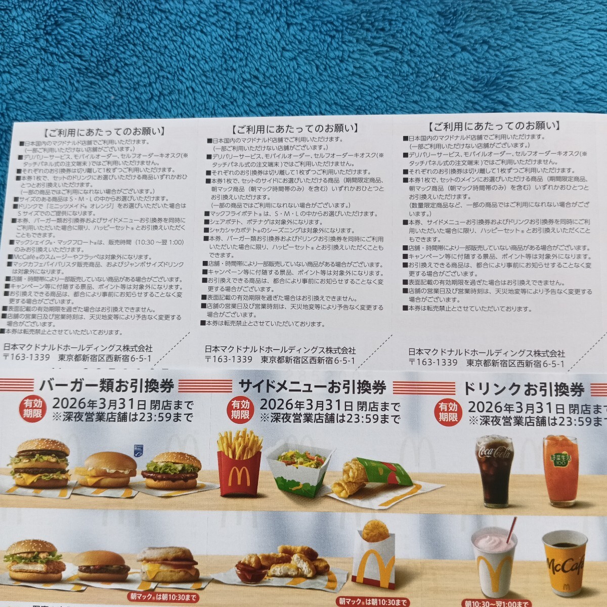 マクドナルド 株主優待券 3セット(シート)  の出品です。