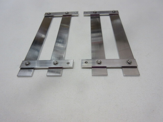 ★付属品、フラットバー磨き2段サイドバンパー左右セット、取付用のステン・トラスビス2×6mm3本と2×8mm1本(左側前部のサイドスカートのステーは、右側と形状が違う為、長さが約3mm位短いのでそれをカバーする為、2mm穴平ワッシャー7枚を接着、約3mm位の厚みにした物をお付け致します)