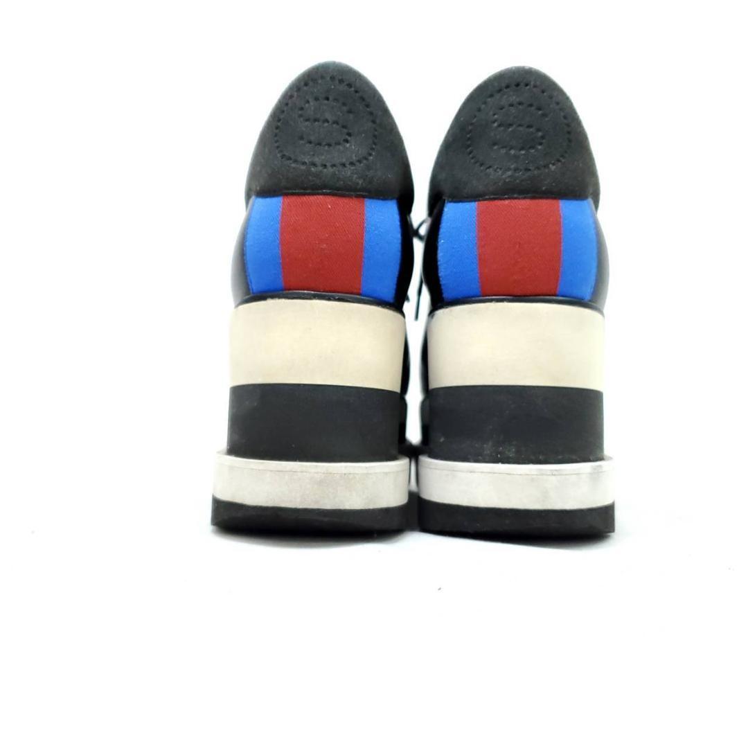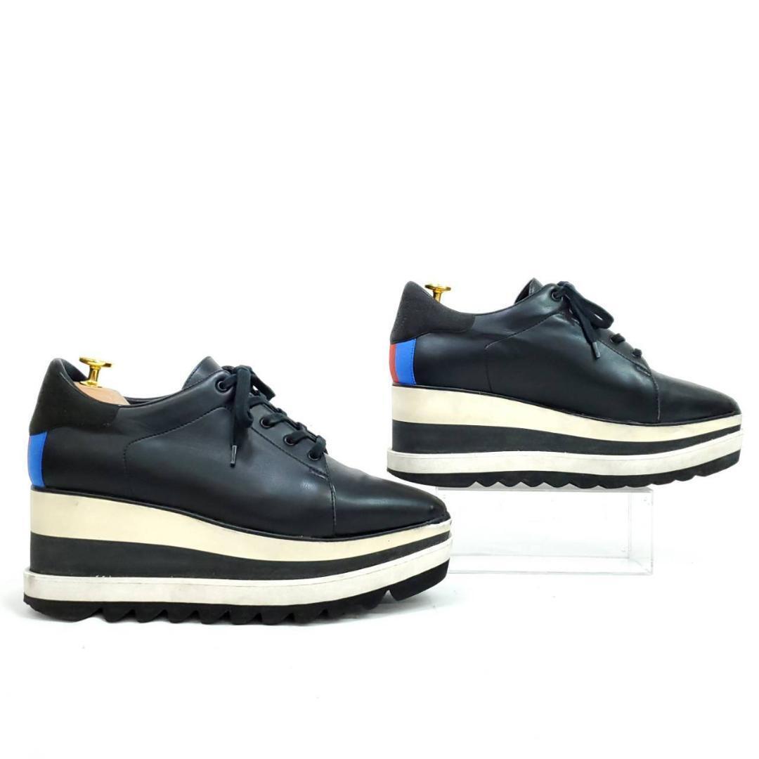 クールなブラックレザーに、アイコニックなシャークソールが存在感抜群。かかとのロゴエンボスと、ブルー×レッドの配色がアクセント。