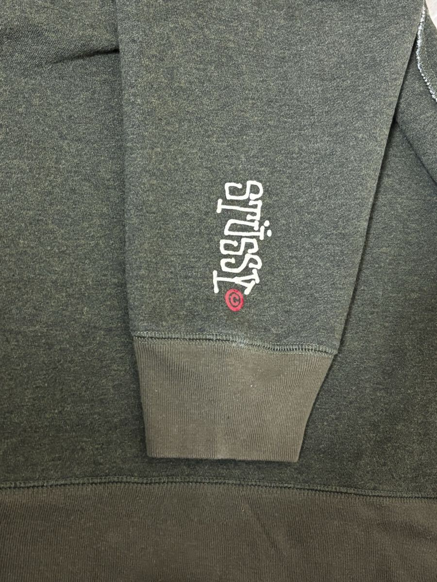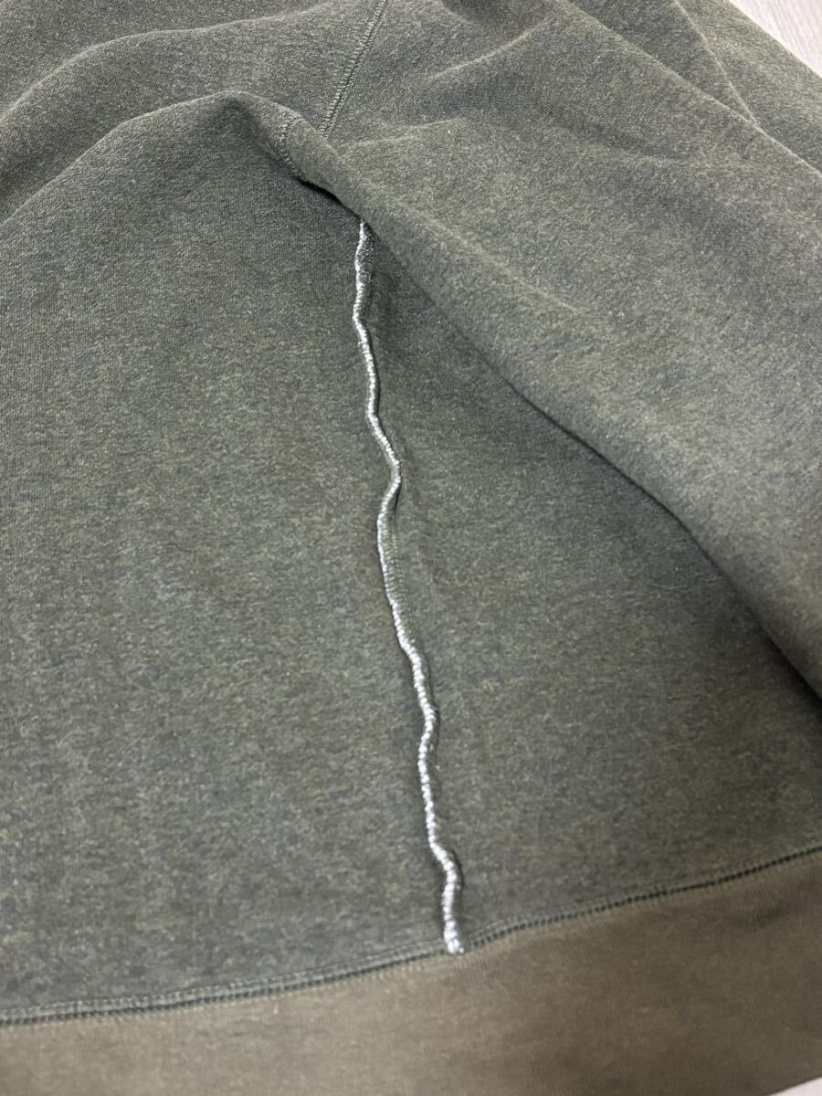 左袖にロゴプリント。脇の縫い目はあえて外側に出したようなデザインになっています。