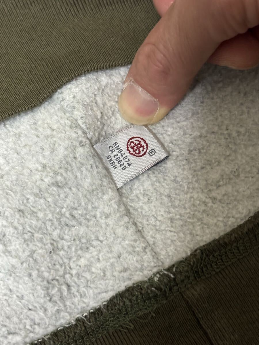 オリーブのようなカラーです、サイズ表記が欠損しておりますがXLくらいかと思います。