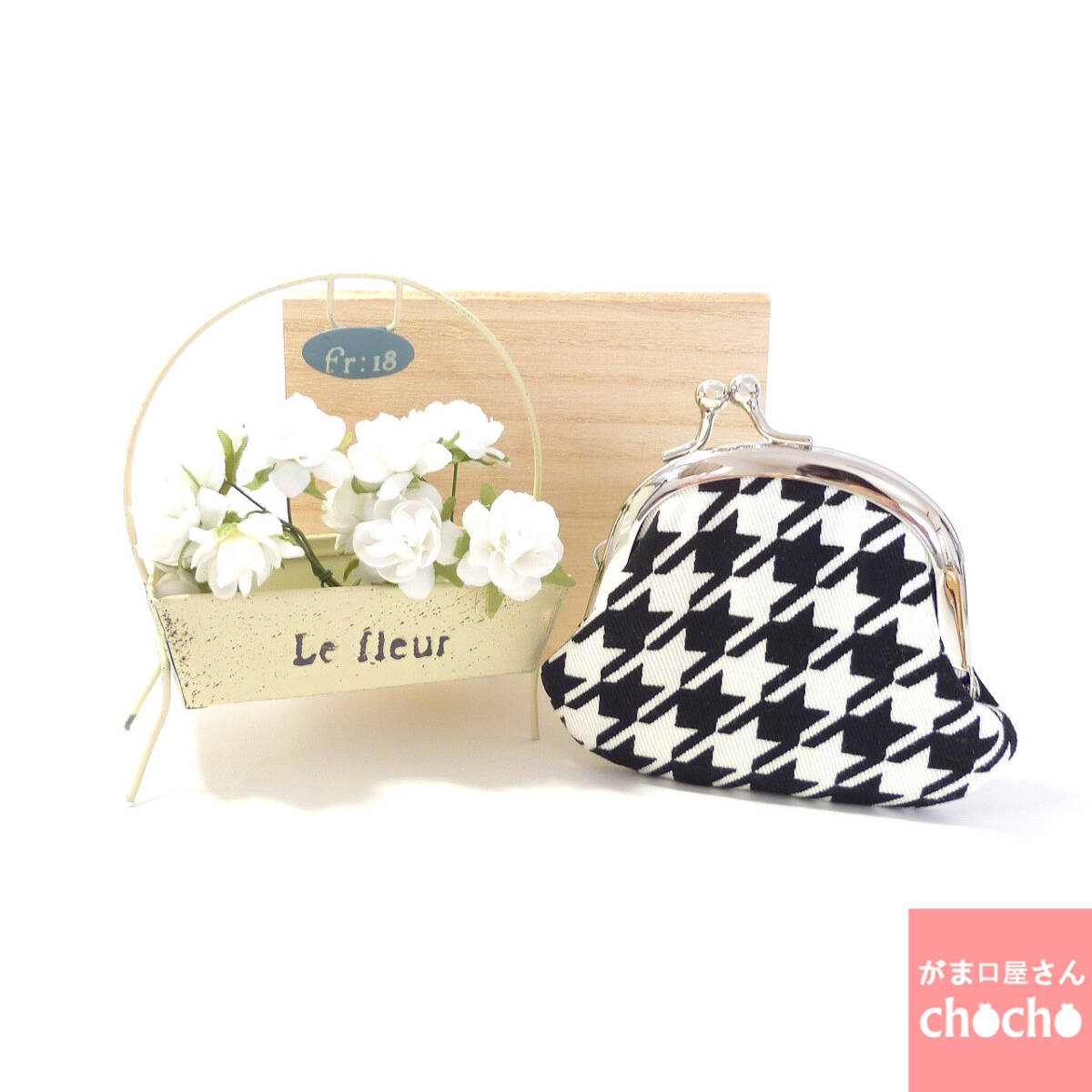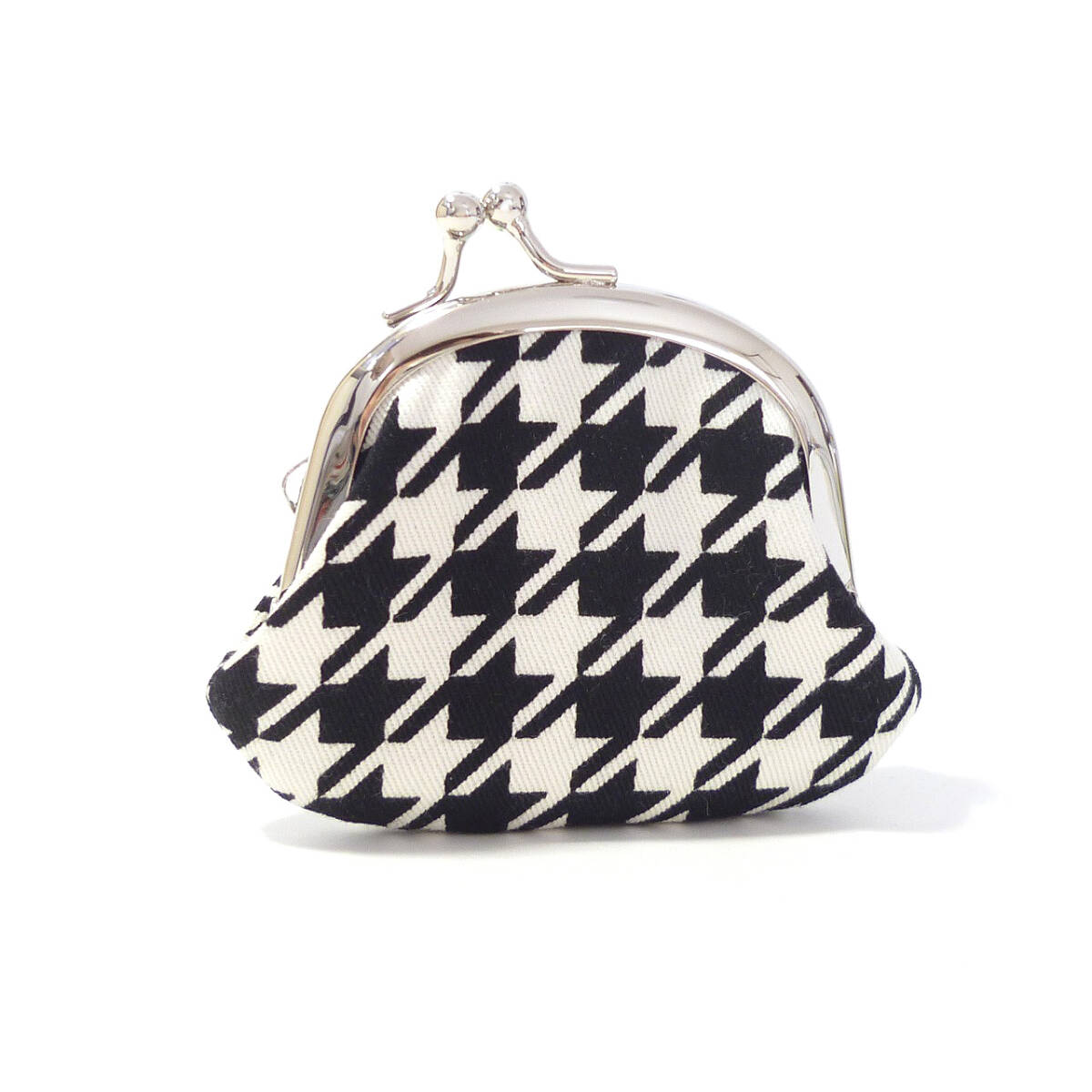 ミニ がま口小銭入れ 千鳥格子柄 黒 コインケース ハンドメイド G637