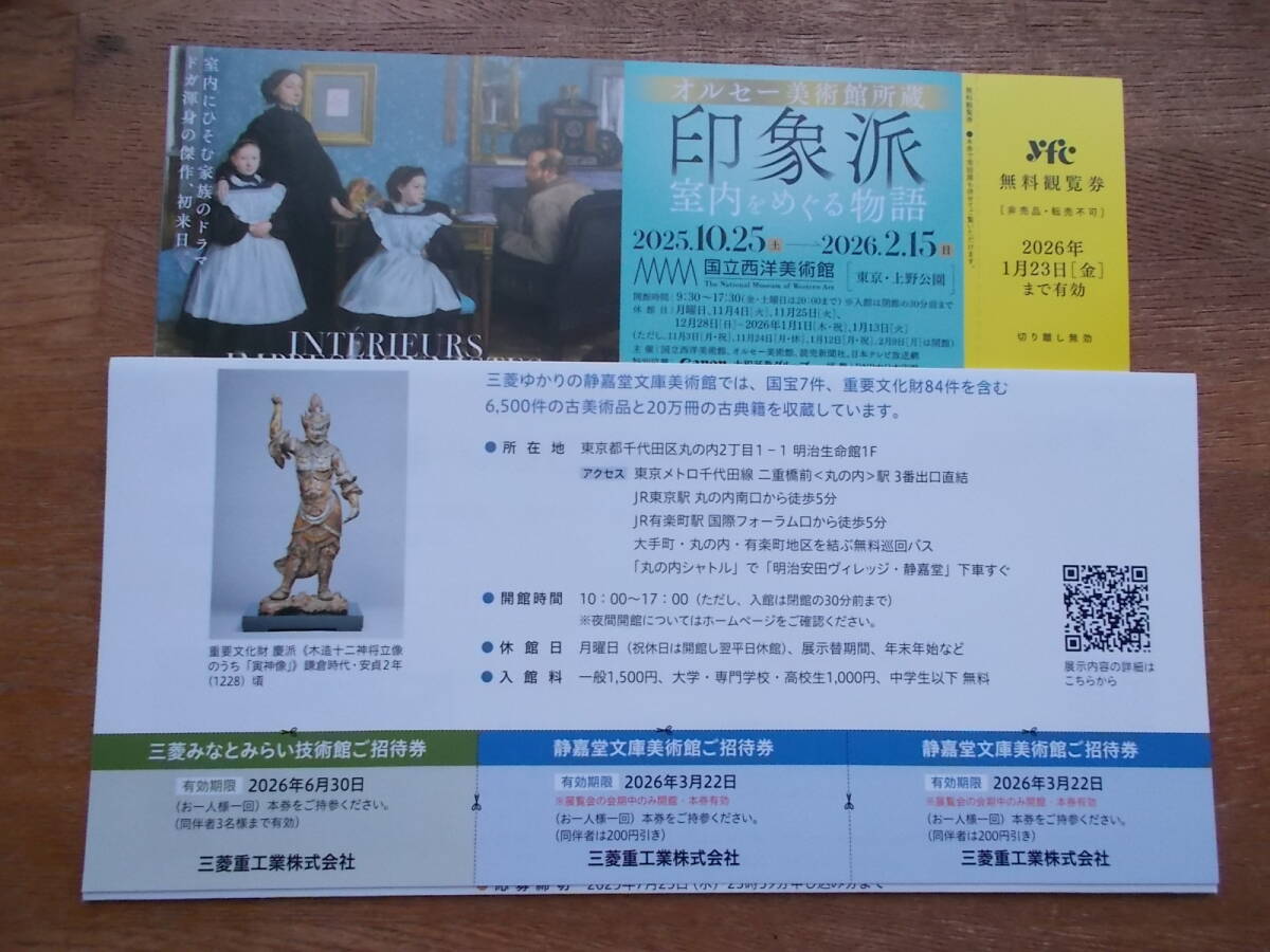 ①印象派 国立西洋美術館 招待券1枚。有効期限は2025年10月25日~2026年1月23日迄。
