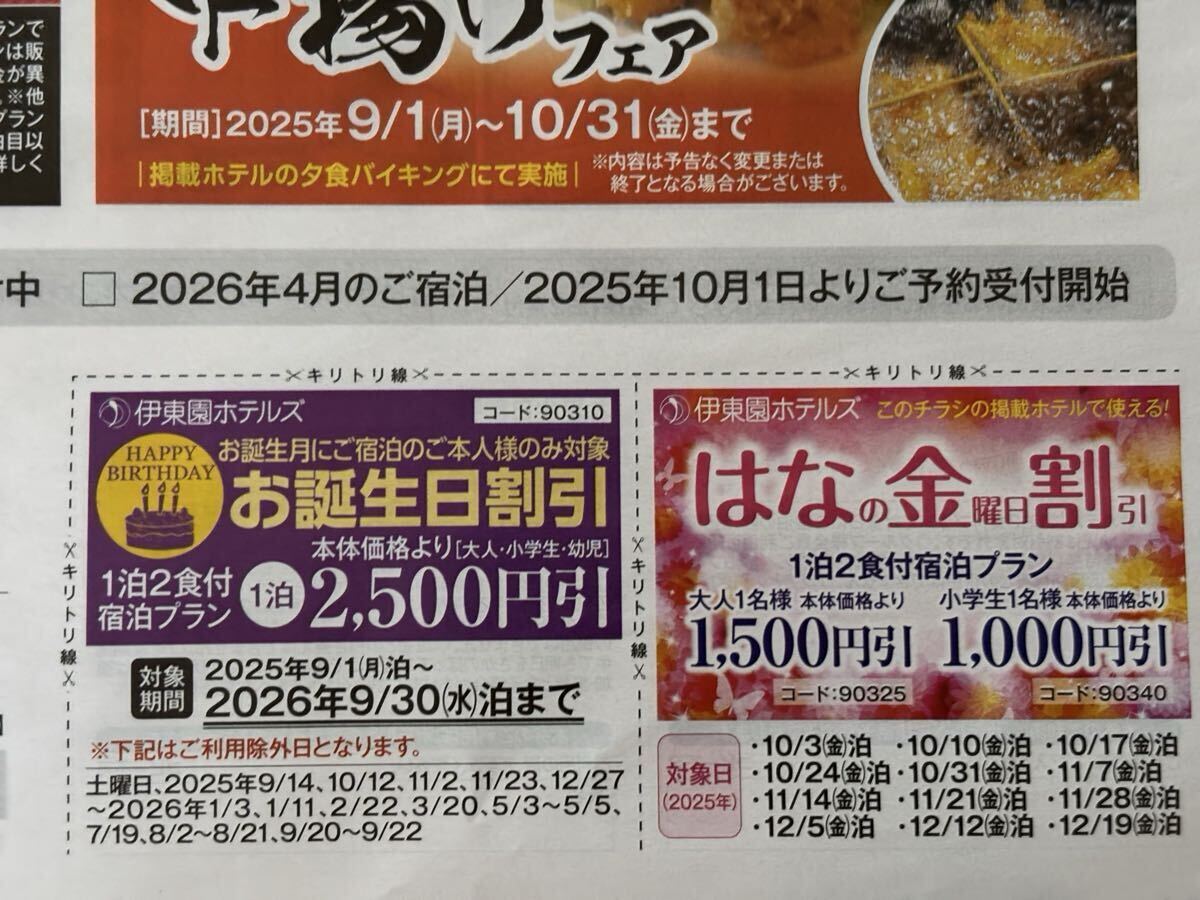 伊東園ホテルズ 伊藤園リゾート 誕生日割引 はなの金曜日割引 2泊目半額