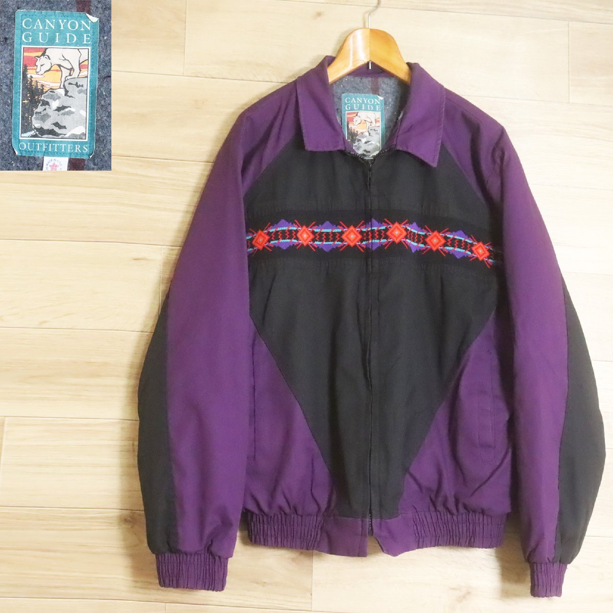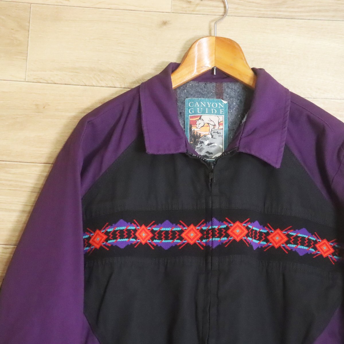 &2R/R7.23-4 USA製 CANYON GUIDE ネイティブパターン ジャケット 裏ブランケット ブルゾン ジップアップ XL パープル アメリカ古着