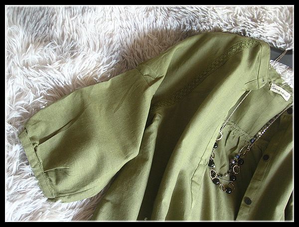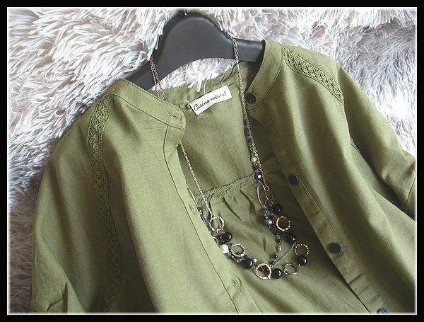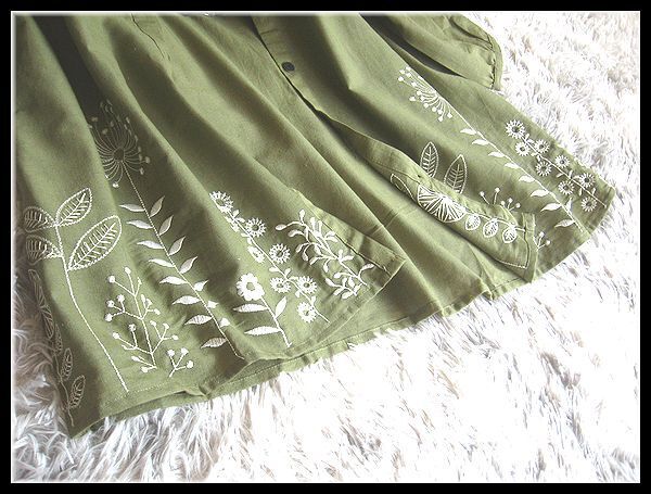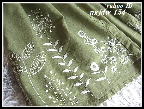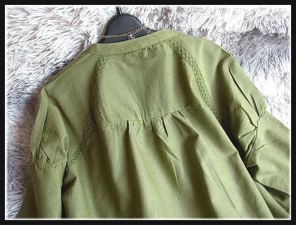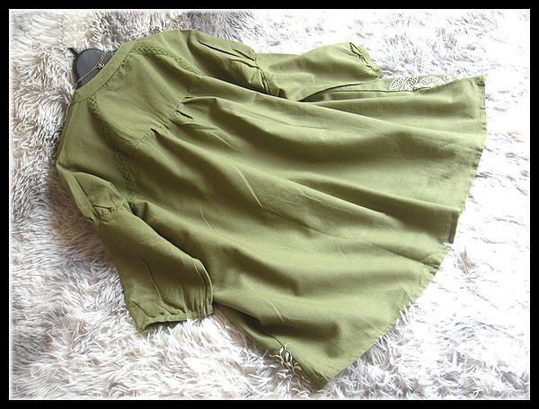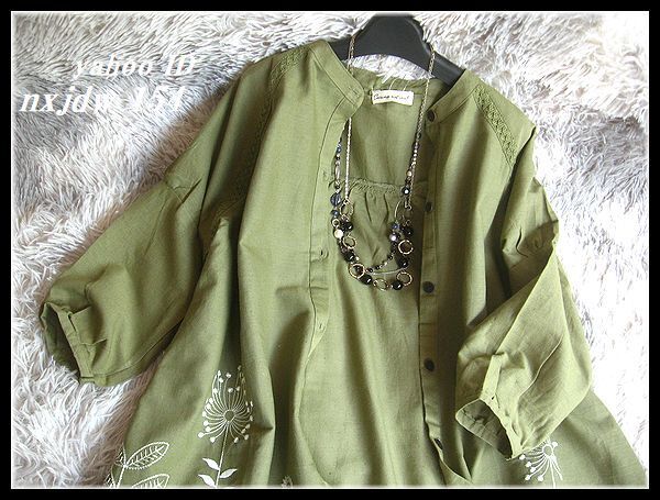 ◆Rose◇訳あり送料無料・ゆったりワンサイズ・ナチュラル可愛い♪刺繍アクセントのブラウスチュニック/抹茶