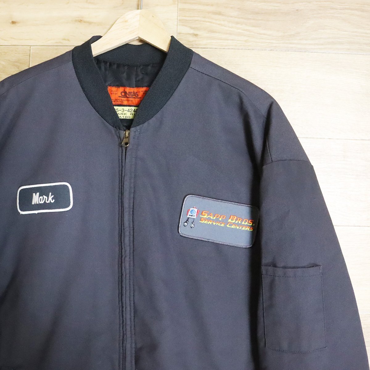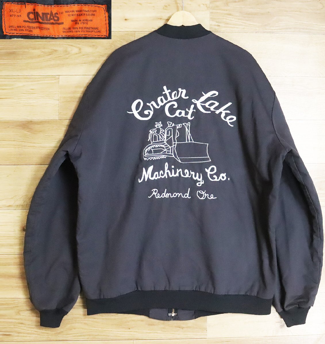C5T/D10.6-1 アメリカ古着 Cintas シンタス ワークジャケット バック刺繍 ネコ 猫 ブルトーザー ジャンパー ブルゾン XL