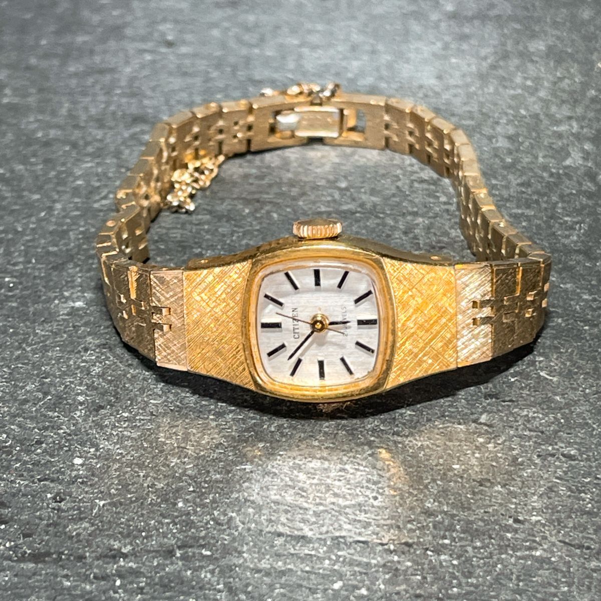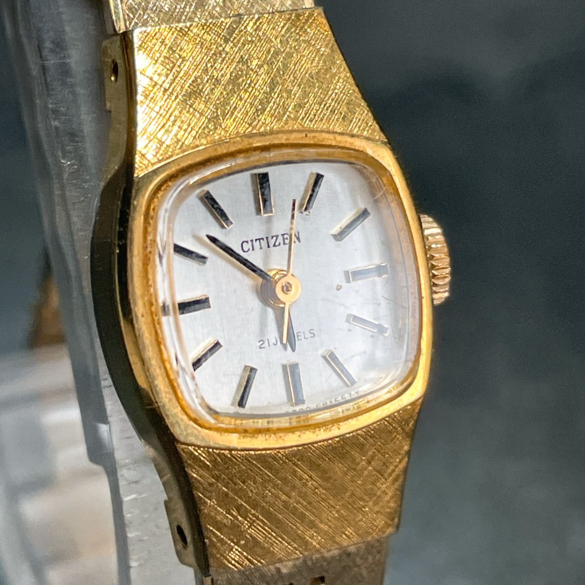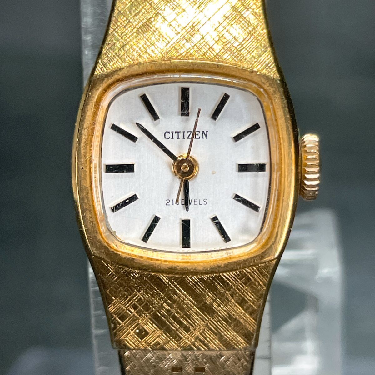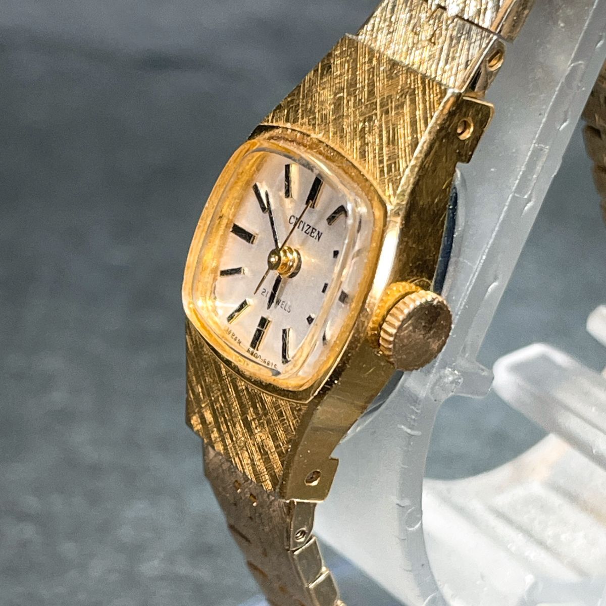 CITIZEN シチズン 4-681088 腕時計 アナログ 手巻き 3針 シルバー文字盤 スクエア メタルバンド ゴールド ステンレススチール レディース