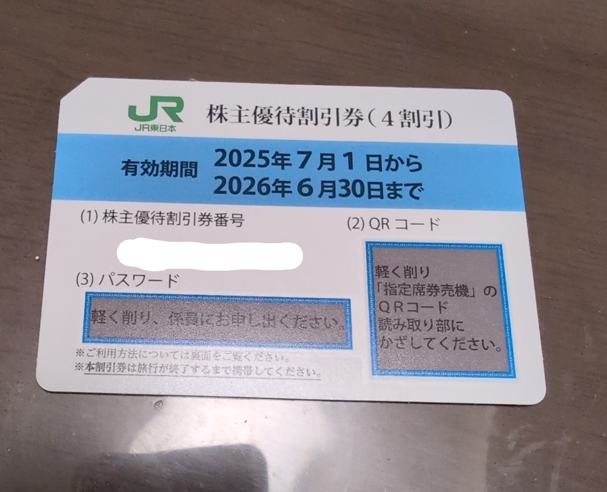 「JR東日本 株主優待券 4割引 有効期限2025年7月1日から2026年6月30日まで 」