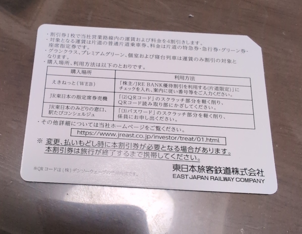 JR東日本の株主優待割引券4割引