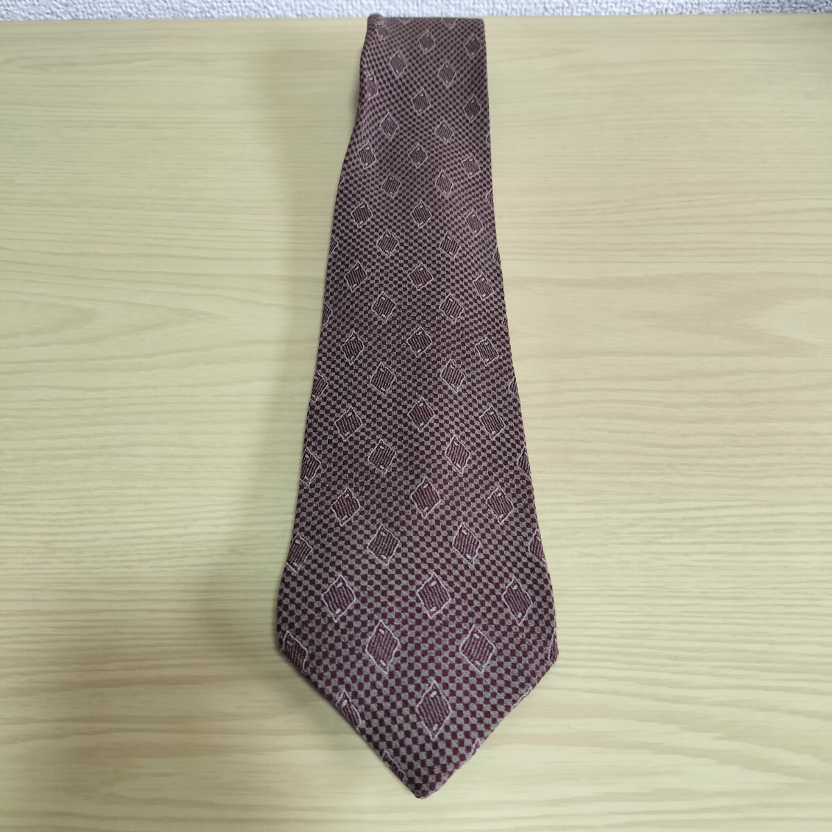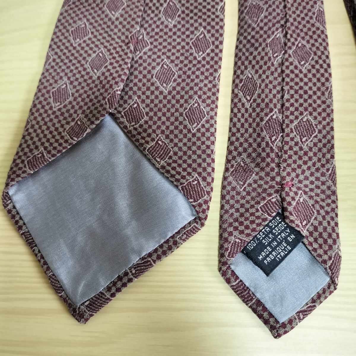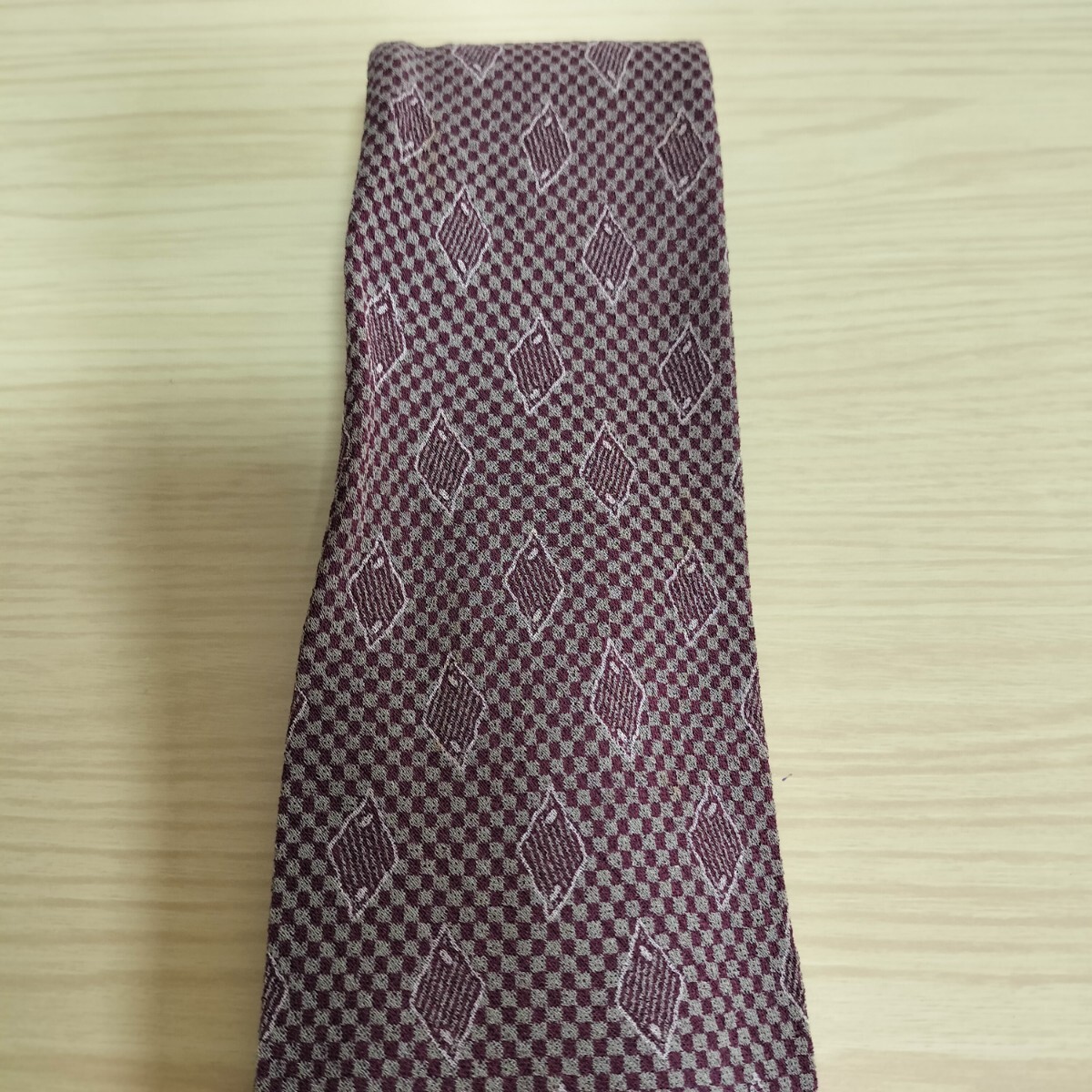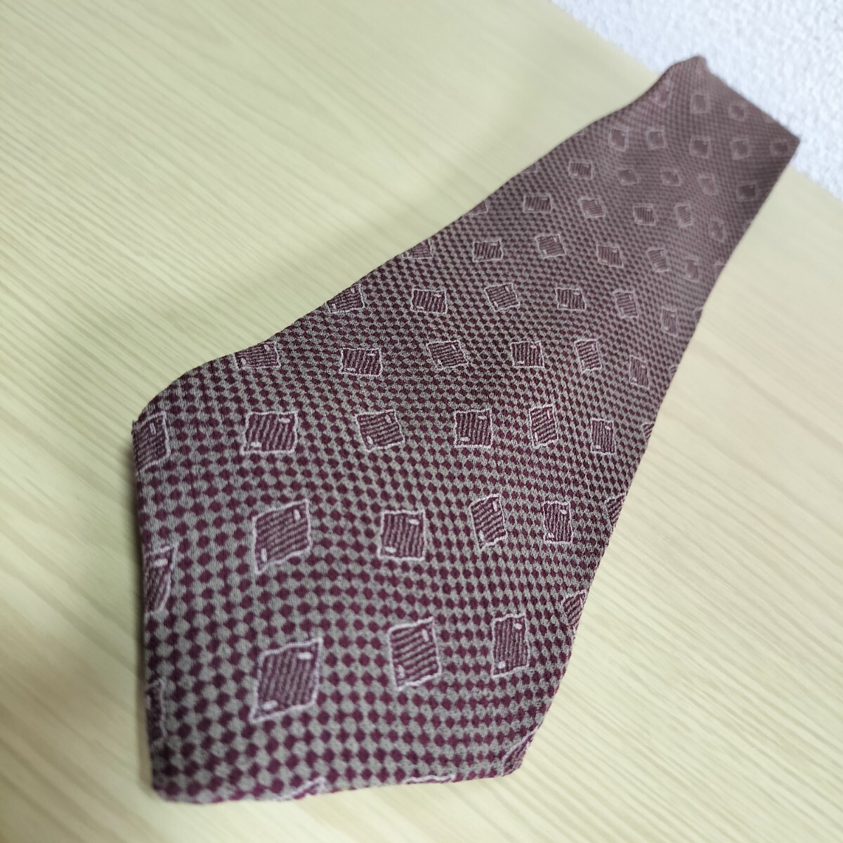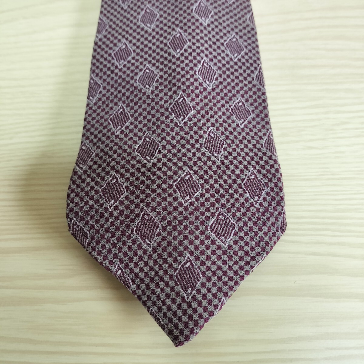グレーボルドーダイヤ四角ドット柄ネクタイ