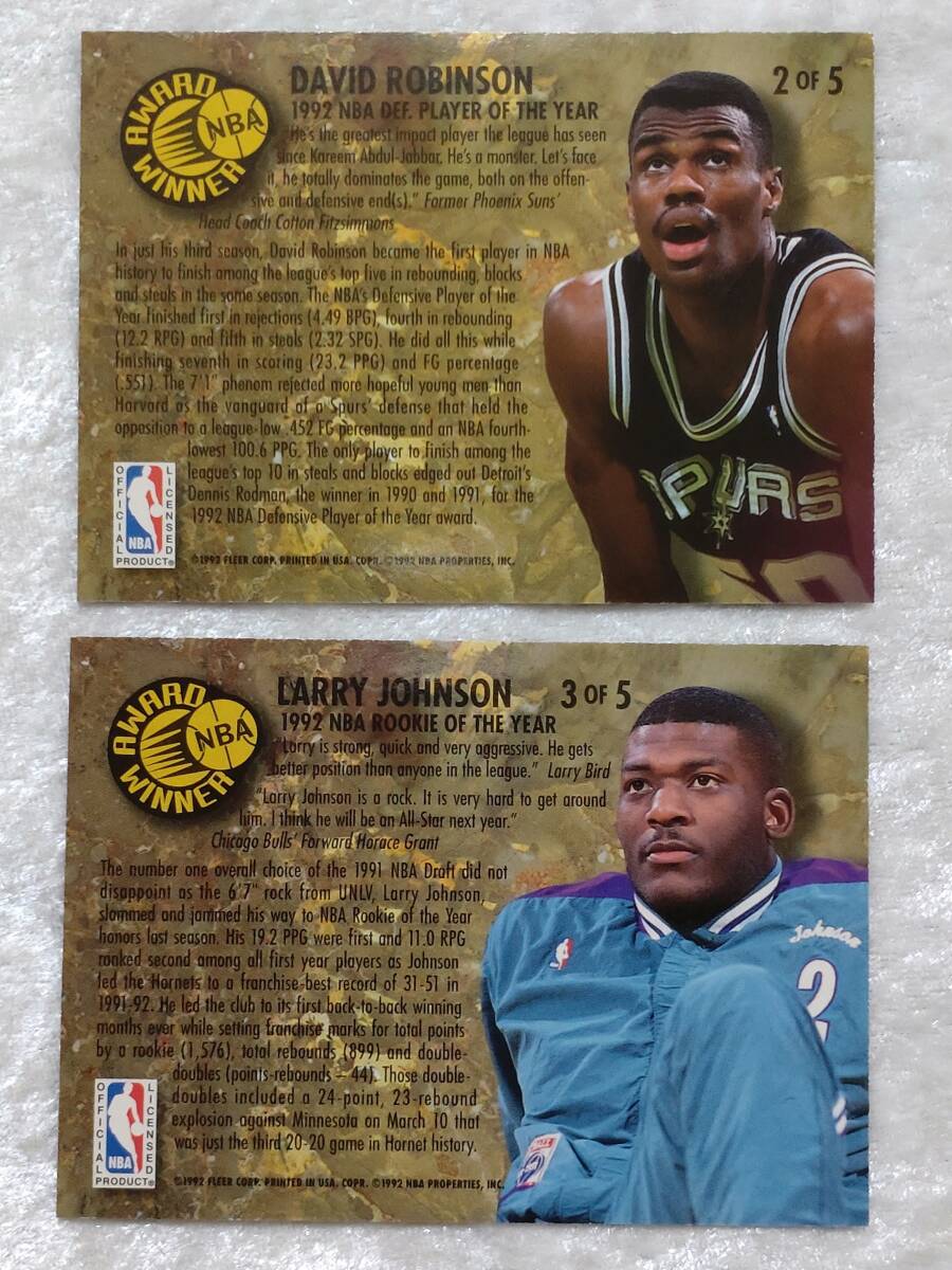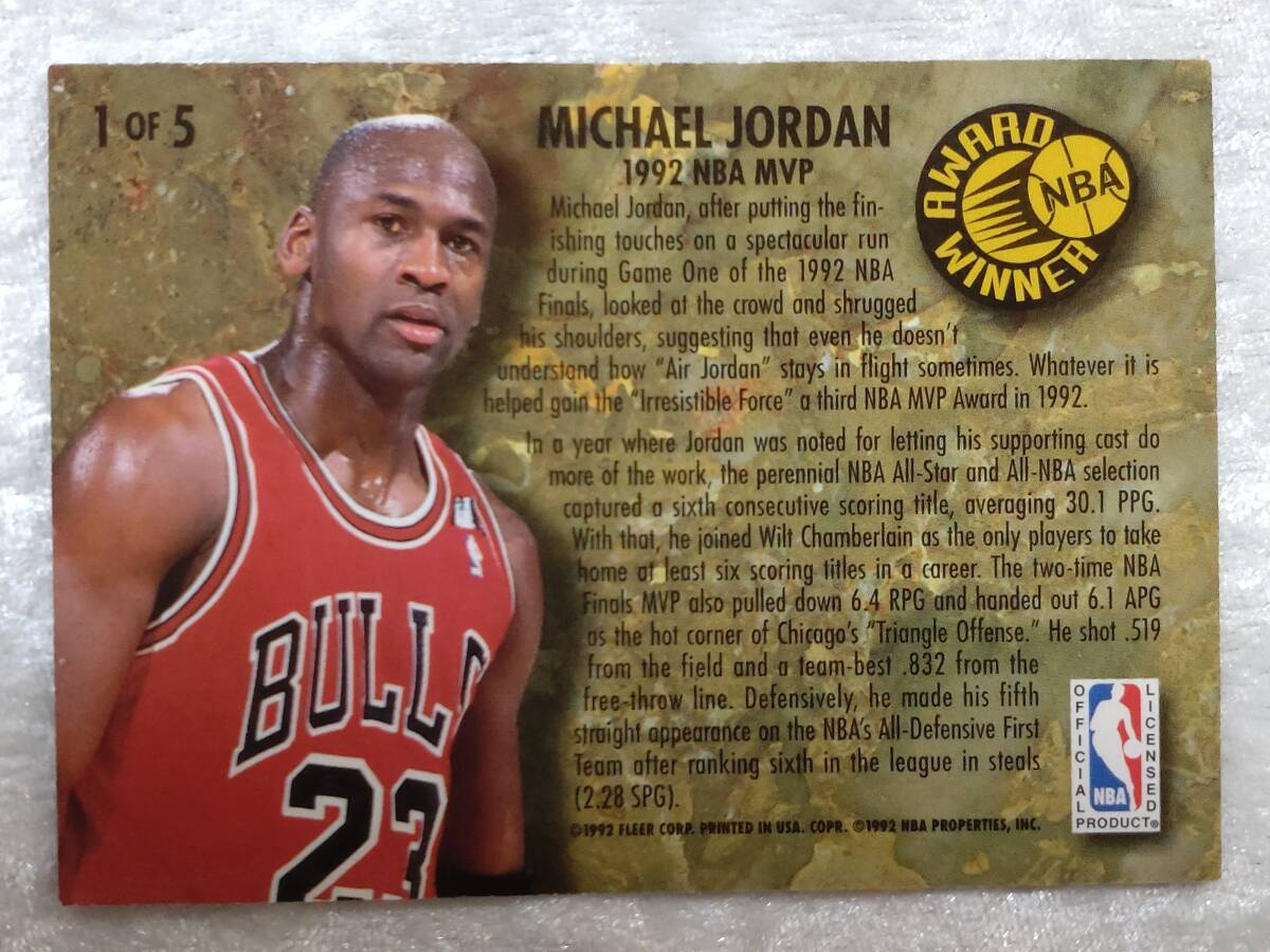 1992-93 Fleer Ultra バスケットボールカードの「NBA Award Winners」インサートカードのコンプリートセット(全5枚)です。マイケル・ジョーダンのカードが含まれています。