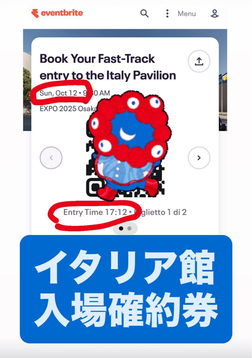 (こちらはイタリア館に入るための整理券なので別途万博会場に入場するためのチケットが必要です)
