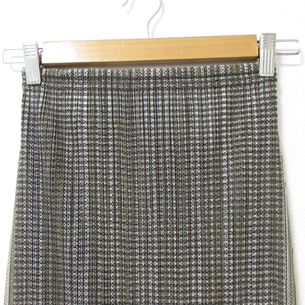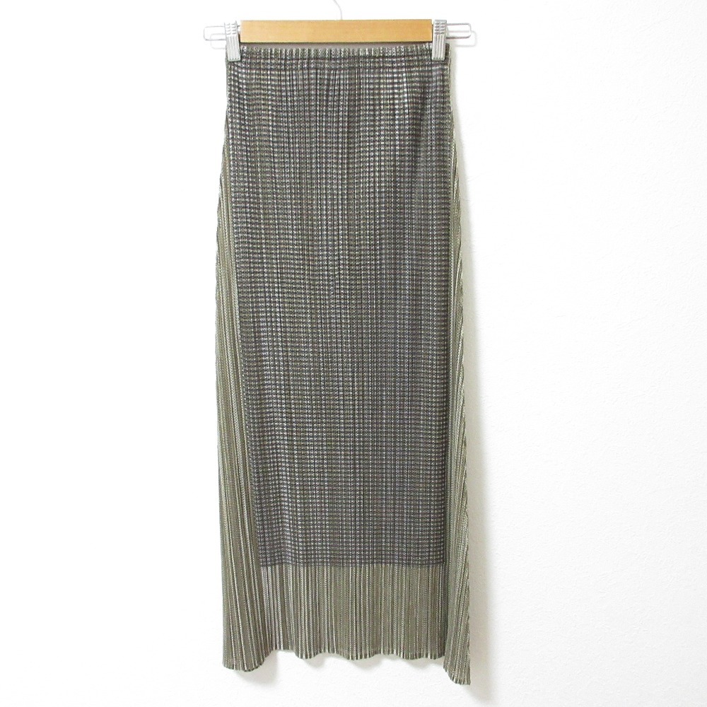 新品同様 プリーツプリーズ イッセイミヤケ ストライプ メッシュ ロングスカート イージースカート PP14-JG165 サイズ2 グリーン