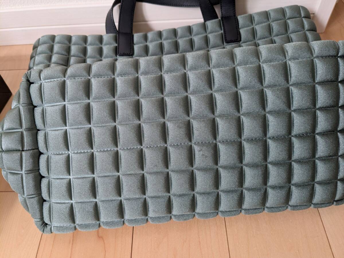 大きさは、底約32センチ×約15センチ(マチ)、高さ約30センチ、持ち手約50センチ、バッグ上部の横幅約46センチです。