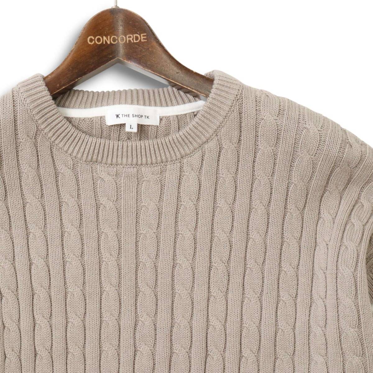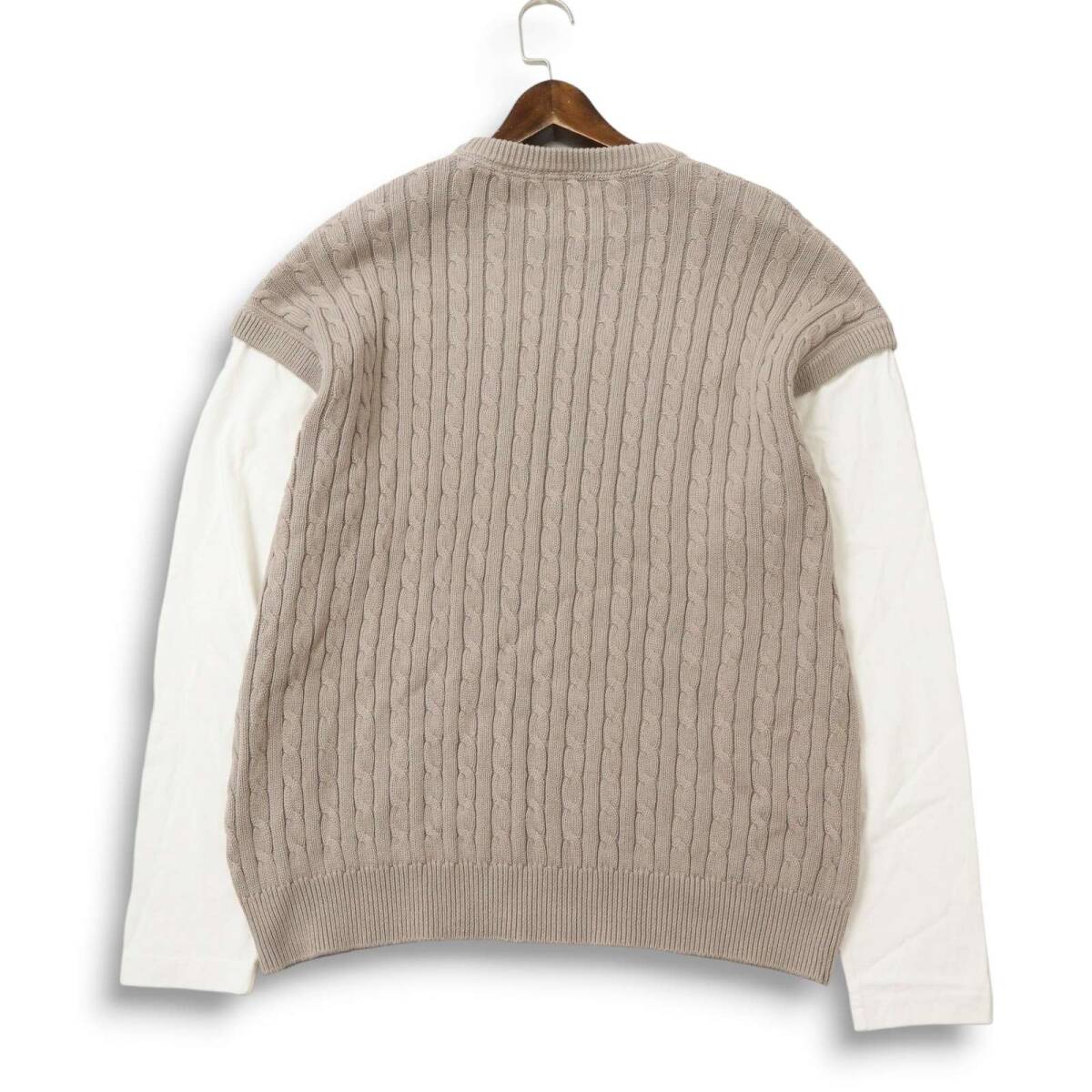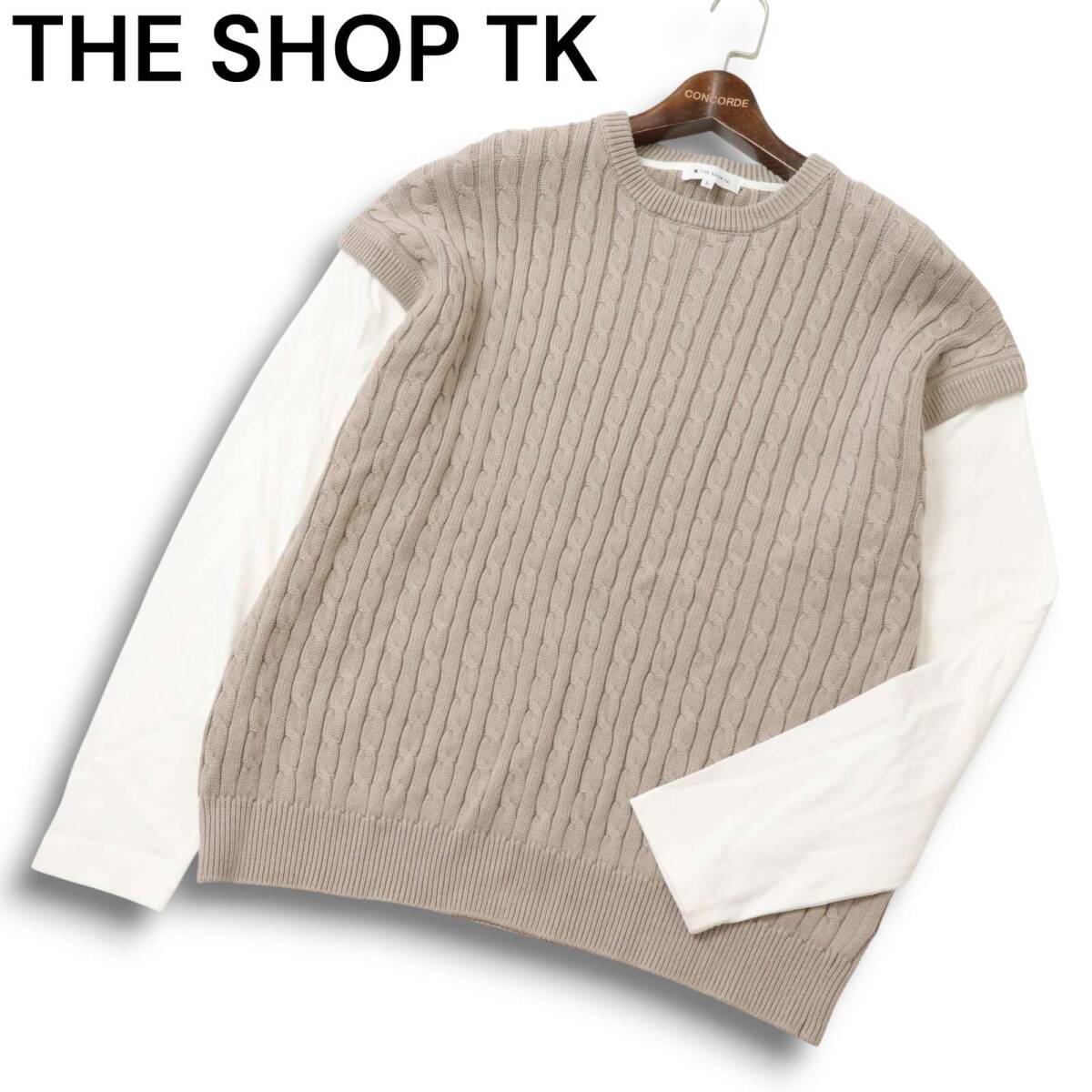 THE SHOP TK タケオキクチ 通年 長袖 カットソー Tシャツ レイヤード風★ 半袖 ケーブル編み ニット セーター Sz.L メンズ