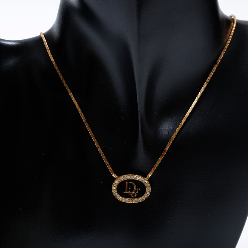 極美品 クリスチャンディオール Christian Dior ヴィンテージ ラインストーン ネックレス ゴールド WS10155