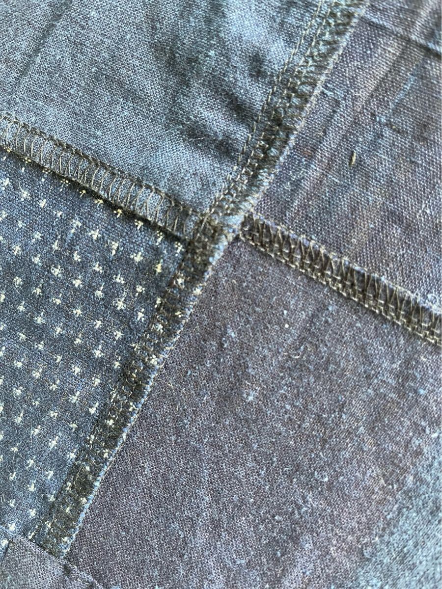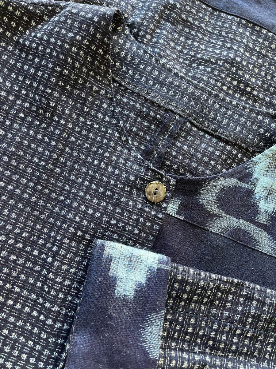 貴重な藍染め木綿 久留米書生絣 絵絣等をパッチワークしました