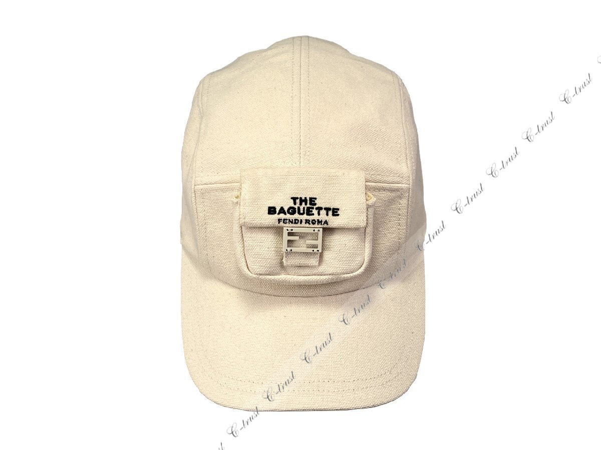 K933-WH.. FENDI × MARC JACOBS フェンディ マークジェイコブス コラボ ベースボールキャップ 帽子 バゲット ロゴ ★ オフホワイト