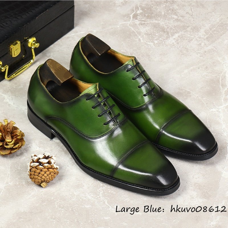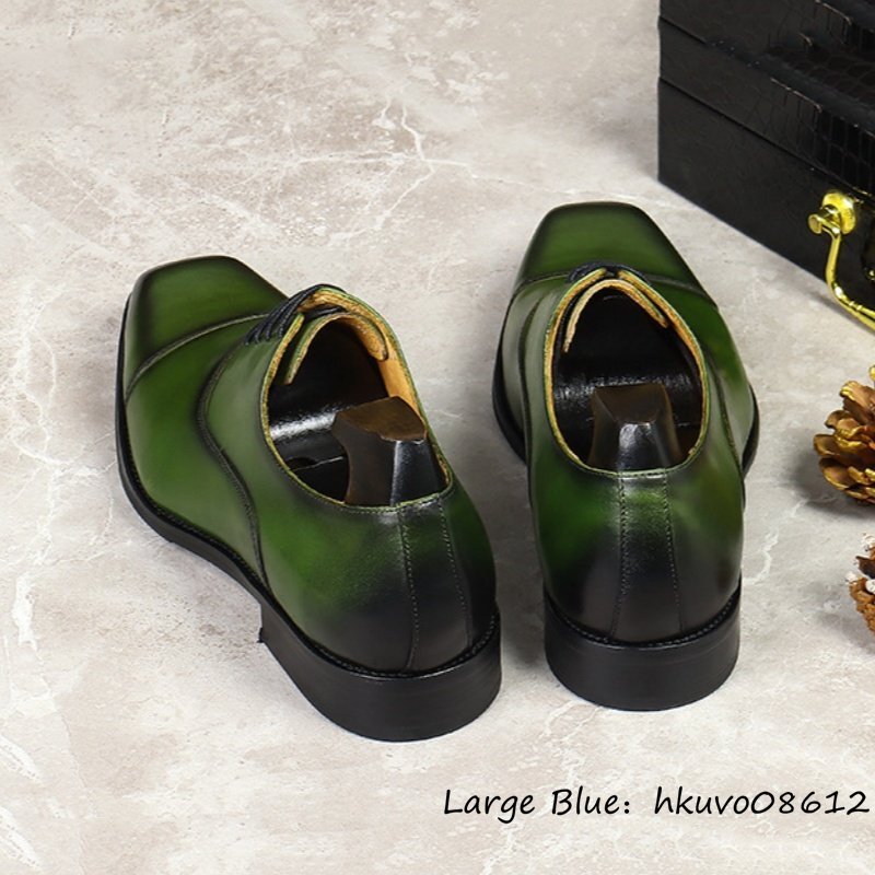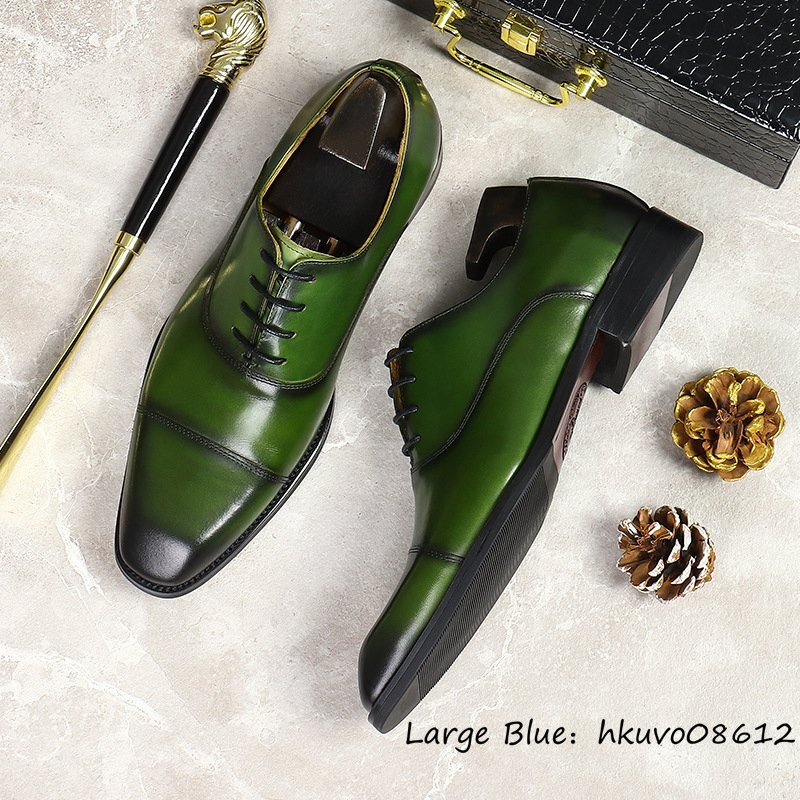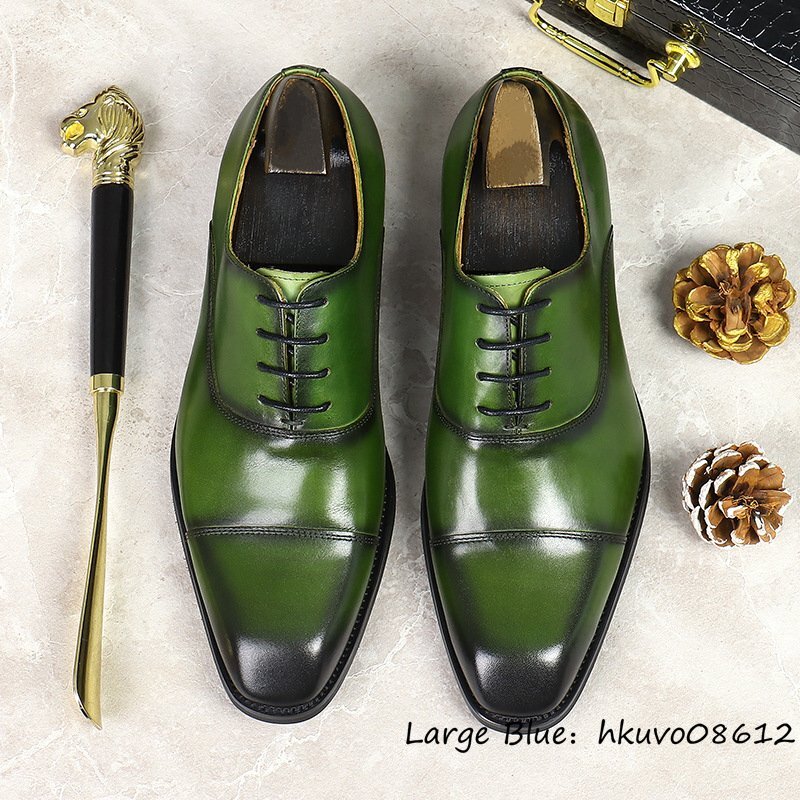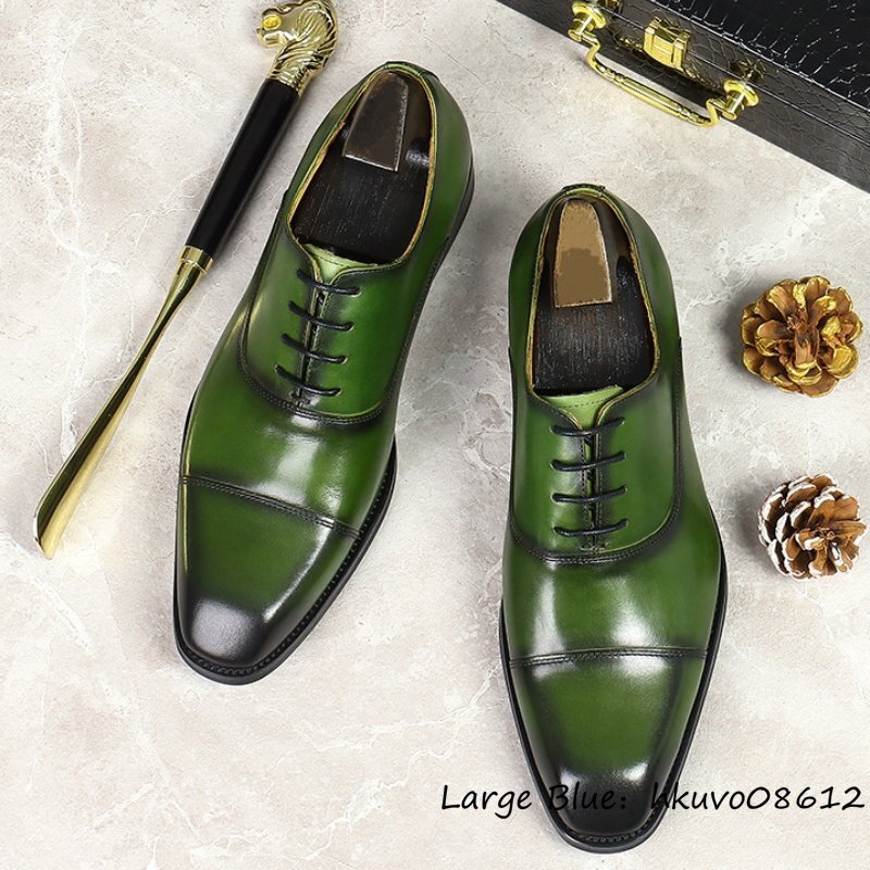 極美品■定価9万 ビジネスシューズ メンズ 紳士靴 職人手作り 本革レザーシューズ 超希少革靴 高級牛革 フォーマル 結婚式 グリーン 25.0cm