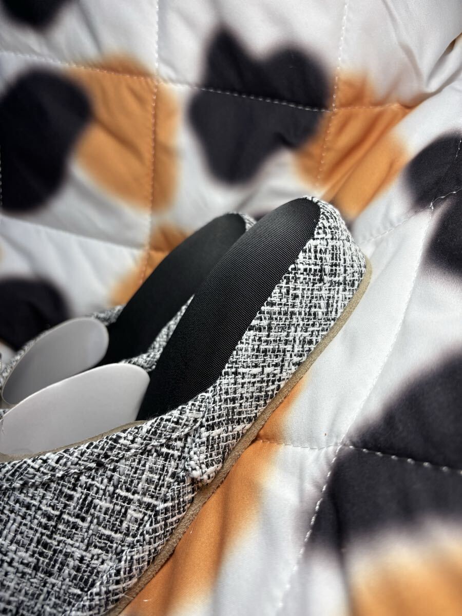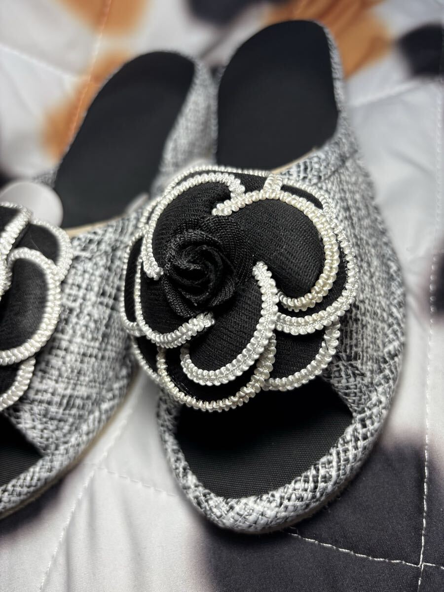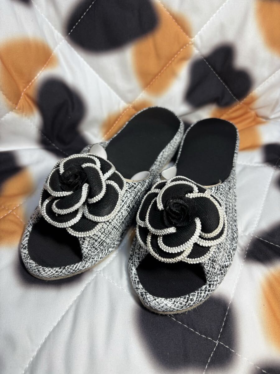 ブラック×ホワイトのシックなツイード生地のエレガント漂うスリッパです