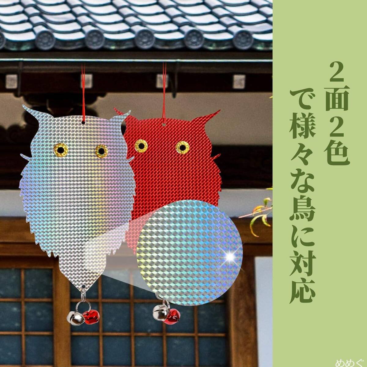[光の反射にて鳥よけ] 鳩など害鳥が強光が怖がる特徴を利用し、本製品は各角度で太陽光による反射で鳩などの害鳥を近寄らせません。同時に両面二色の設計で特定的な色が怖がる鳥をより付けません。
