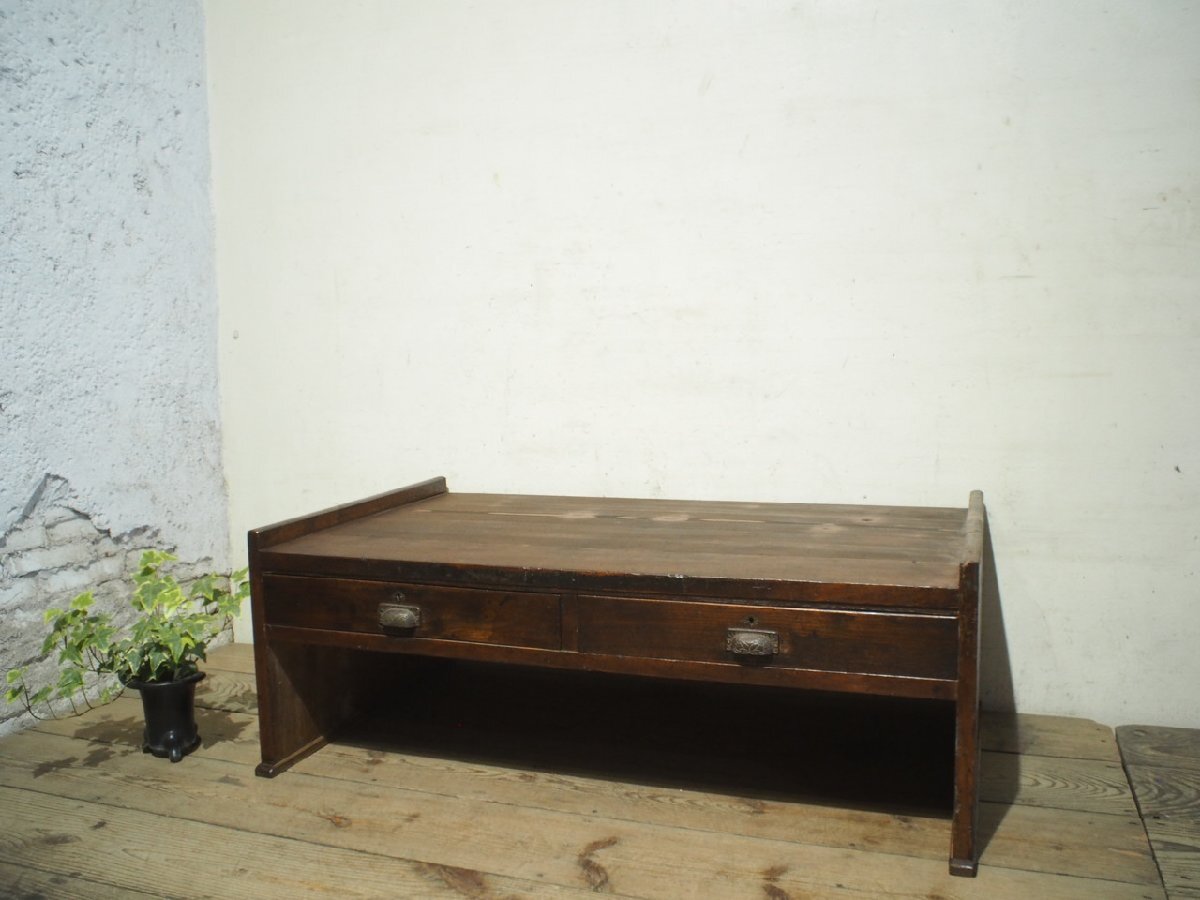 タF0979◆天板W101cm×D60cm◆ヴィンテージ◆素朴な杉材の大きい木製文机◆陳列台 展示台 ローテーブル 座卓 ちゃぶ台 引き出し レトロM笹4