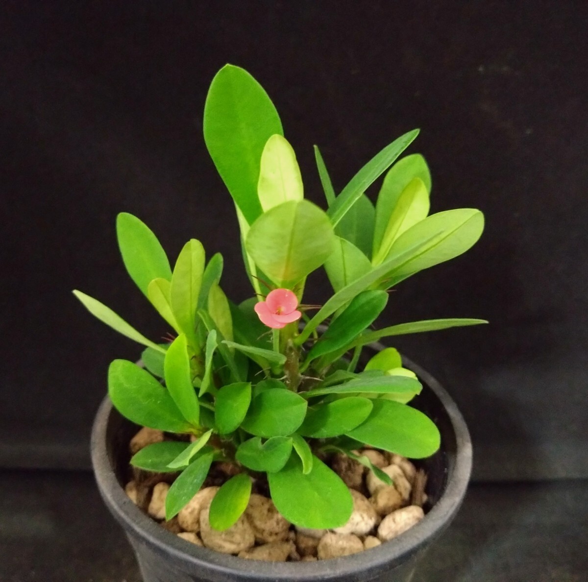 ハナキリンはマダガスカル原産のトウダイグサ科の低木で茎が多肉で棘が密生しサボテンに似ており、花が美しいので観賞用に栽培される、一見サボテンのように見えるユーフォルビア属の植物です。