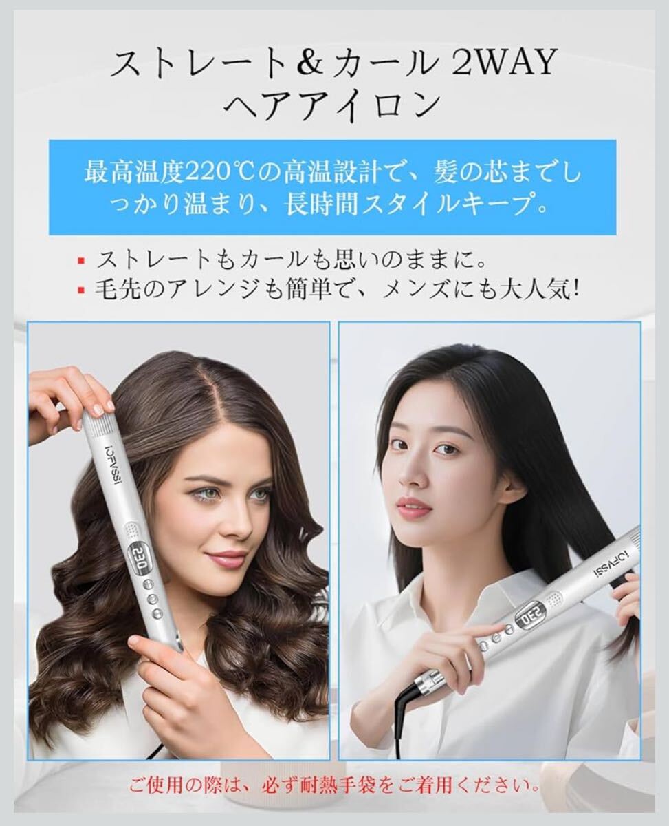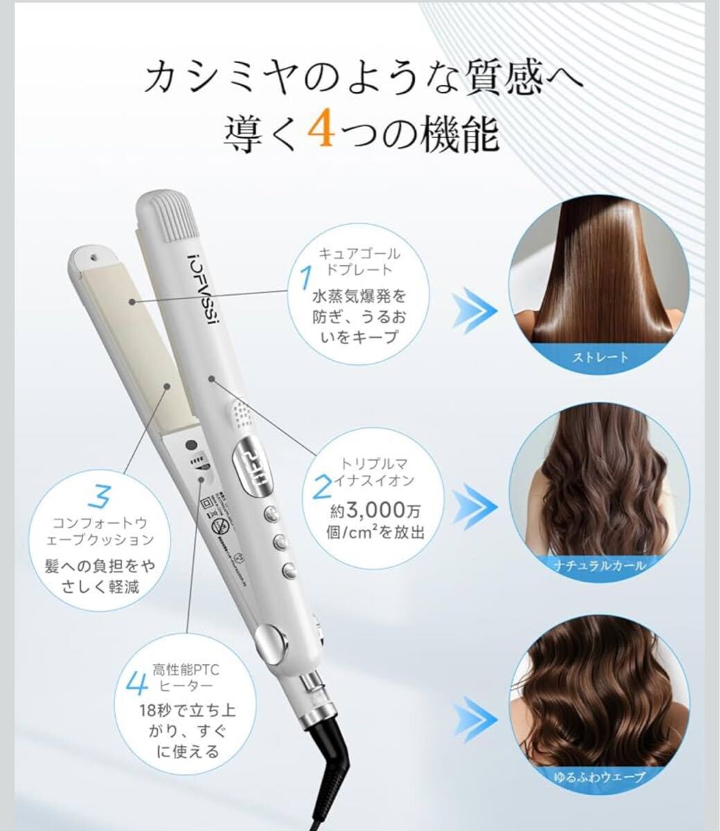 扱いやすいの設計:滑りすぎず引っかかりにくい、絶妙なプレートの質感で、初心者でもスムーズに操作できます。髪をしっかり挟みやすく、1回の通しでまとまりやすいため、時短スタイリングに役立ちます。忙しい朝や外出前の手直しにも便利で、日常使いに適したヘアアイロンです。