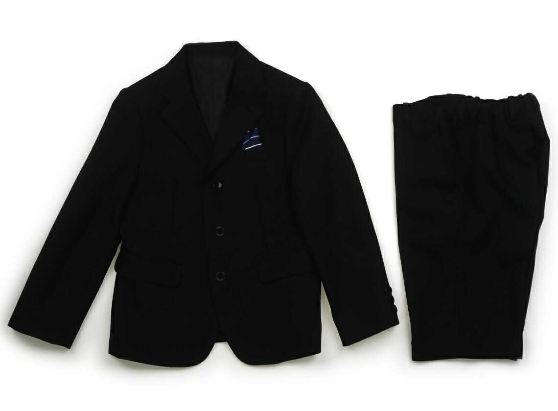 3点セットです。ジャケットは前ポケットあり、 肩パッドあり、 裏地は総裏地、 素材はポリエステル、 ヘリンボーン。胸のチーフは縫い付けです。パンツは前ファスナー・ボタンタイプ・着丈約45cm。ポケットあり、裏地なし、素材・柄はジャケットと同じ。ネクタイは長さ約30cm、幅約4cmです。パンツ前にうっすらと白いスレがありますが他は綺麗な状態です。これから活躍してくれそうです。