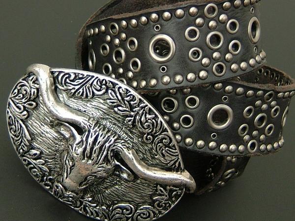 ■ずっしりと重い重厚バックルに無数のスタッズのベルト