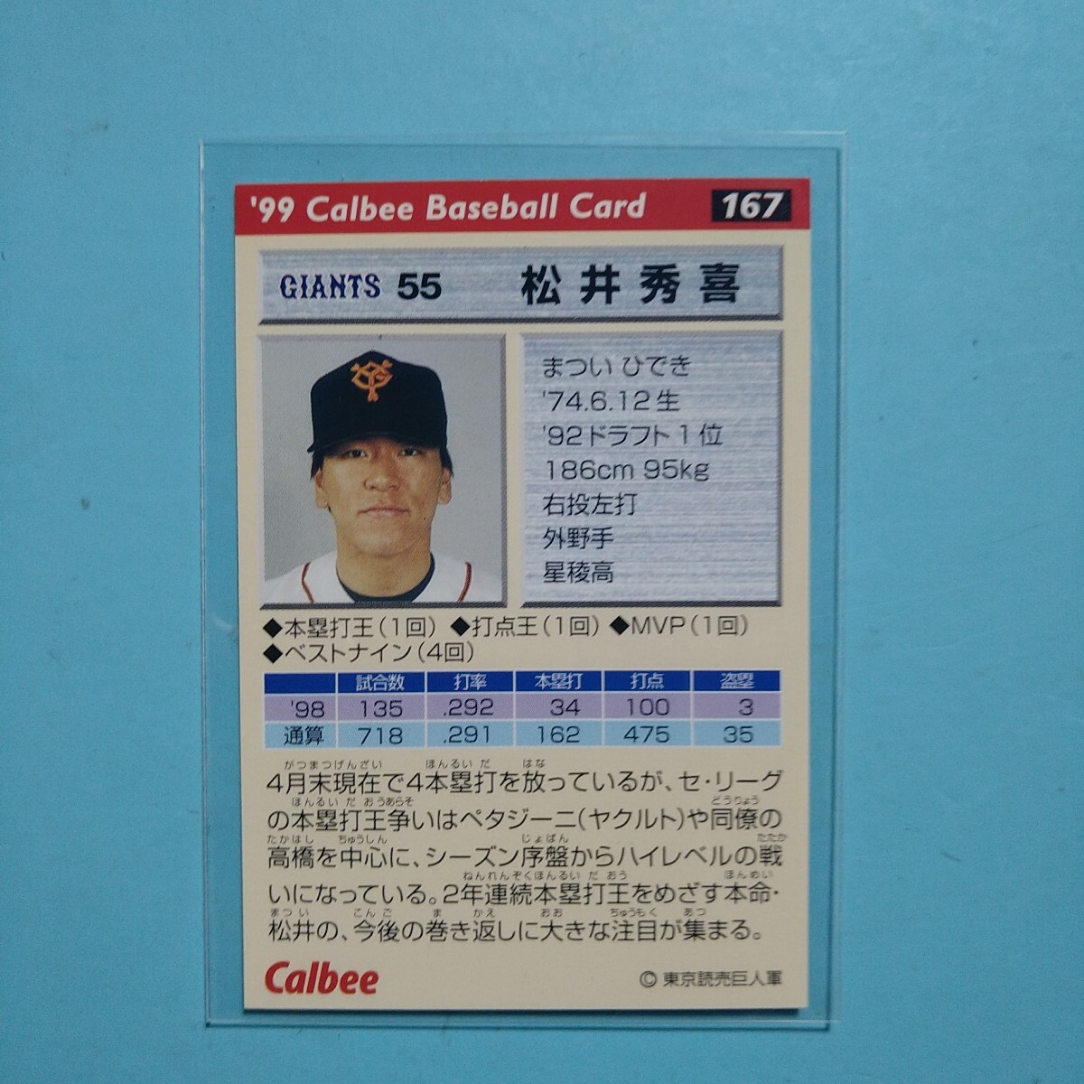 1999 カルビー 松井秀喜 ゴールドサインカード 巨人 金箔サイン 167