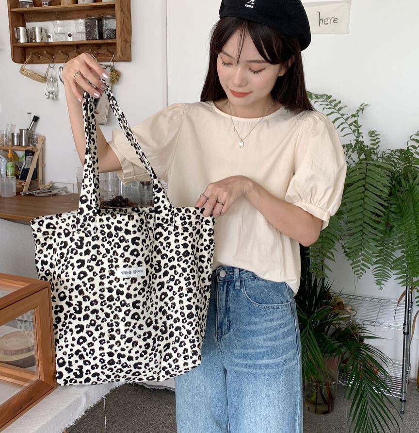 送料無料 匿名 レディース キャンバス トートバッグ レオパード ヒョウ柄 ハンドバック